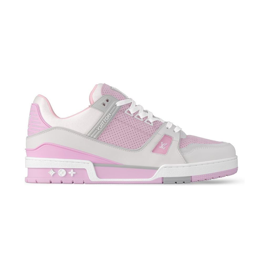 حذاء رياضي رجالي من لويس فيتون مصنوع من جلد العجل المثقب باللون الوردي