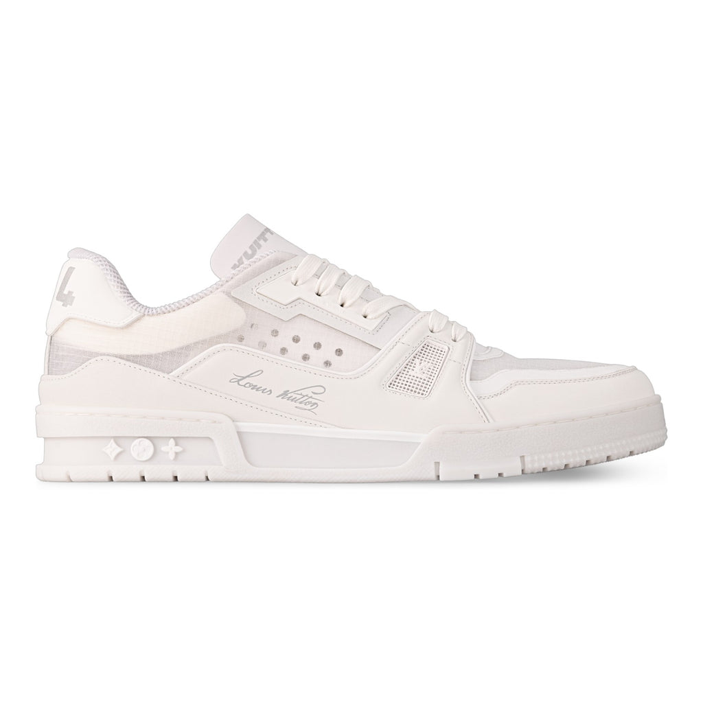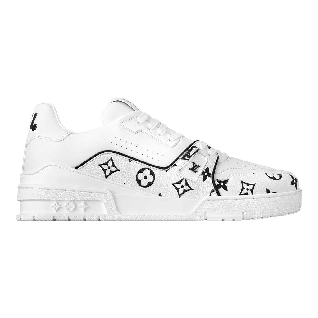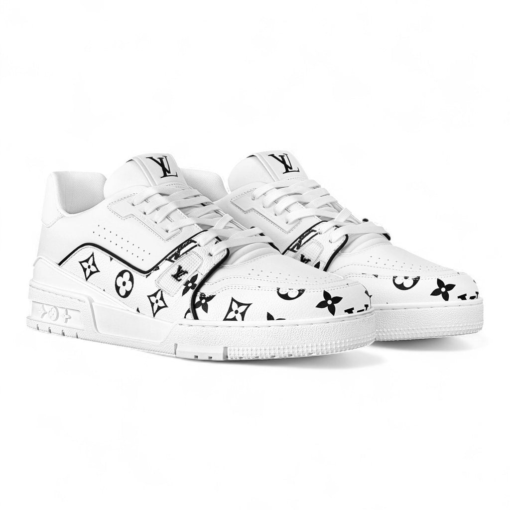 حذاء رياضي رجالي من جلد العجل مطبوع عليه شعار لويس فيتون باللون الأبيض