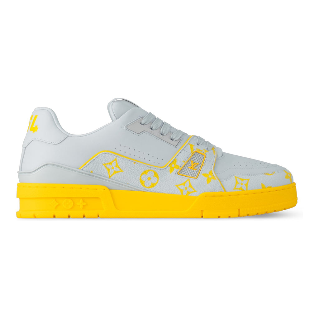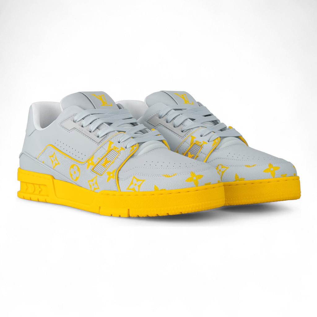 حذاء رياضي رجالي من جلد العجل مطبوع عليه شعار لويس فيتون باللون الأصفر