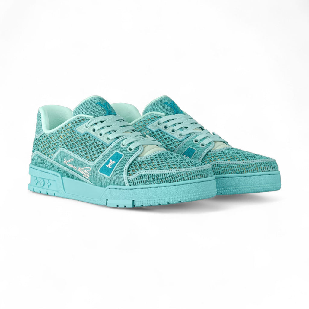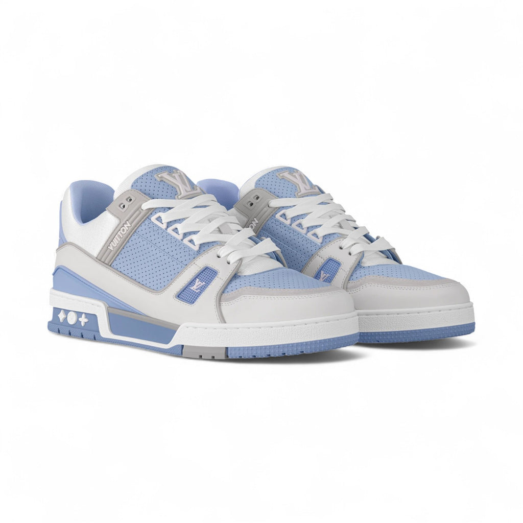 حذاء رياضي رجالي من لويس فيتون مصنوع من جلد العجل المثقب باللون الأزرق