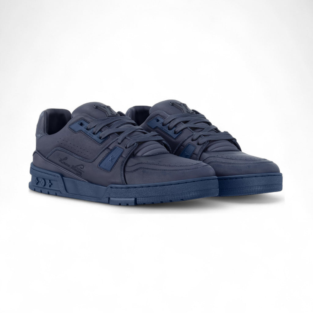 حذاء رياضي رجالي من لويس فيتون بمظهر عتيق مصنوع من جلد العجل باللون الأزرق الداكن