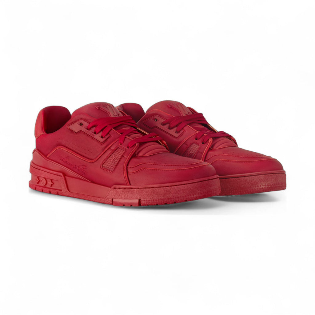 حذاء رياضي رجالي من لويس فيتون بمظهر عتيق من جلد العجل باللون الأحمر