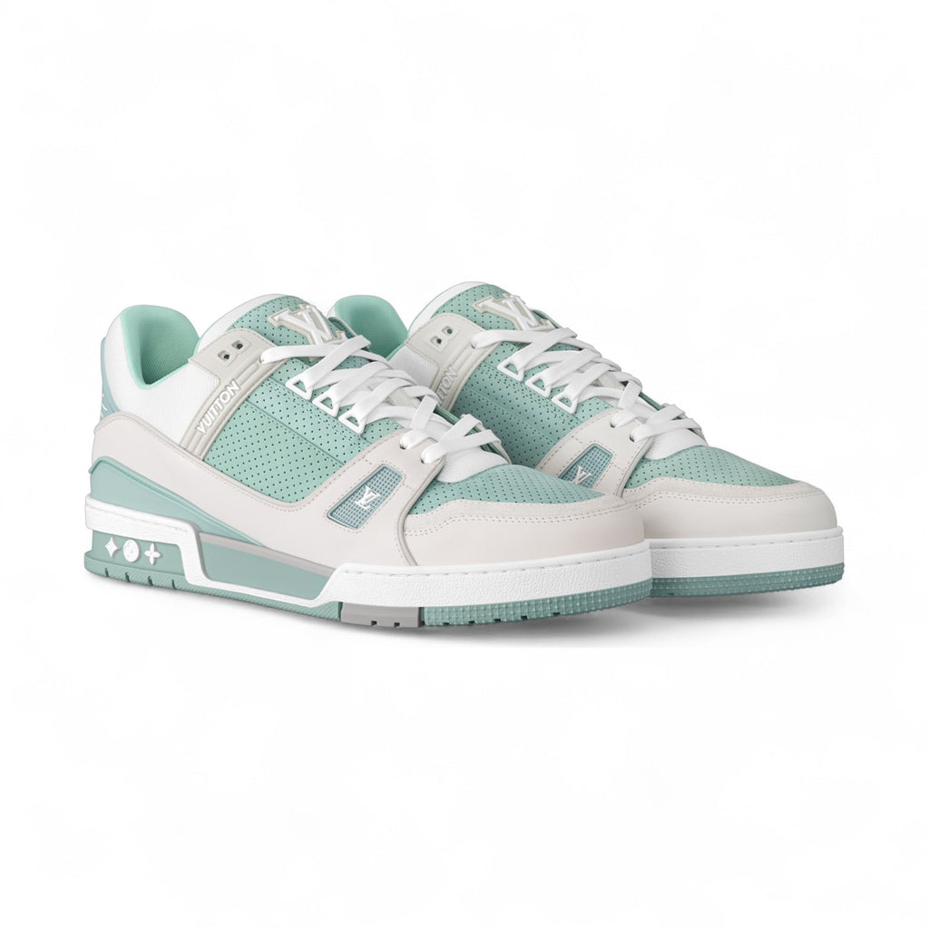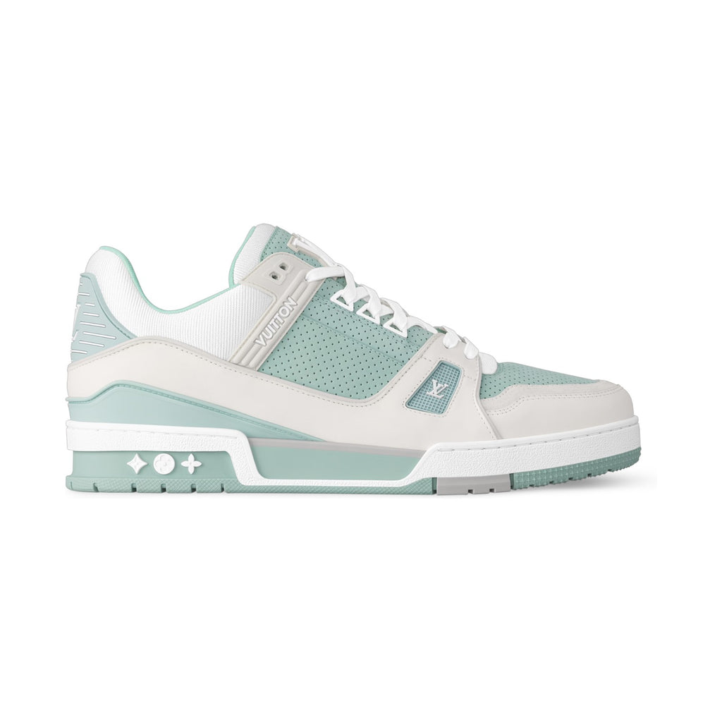 حذاء رياضي رجالي من لويس فيتون مصنوع من جلد العجل المثقب باللون الأخضر