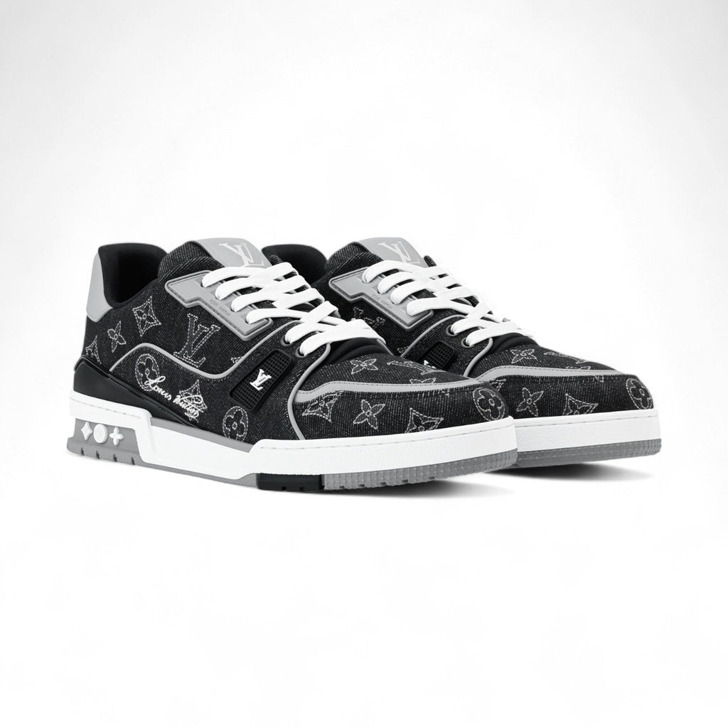 حذاء رياضي رجالي من لويس فيتون مصنوع من الدنيم وجلد العجل باللون الأسود