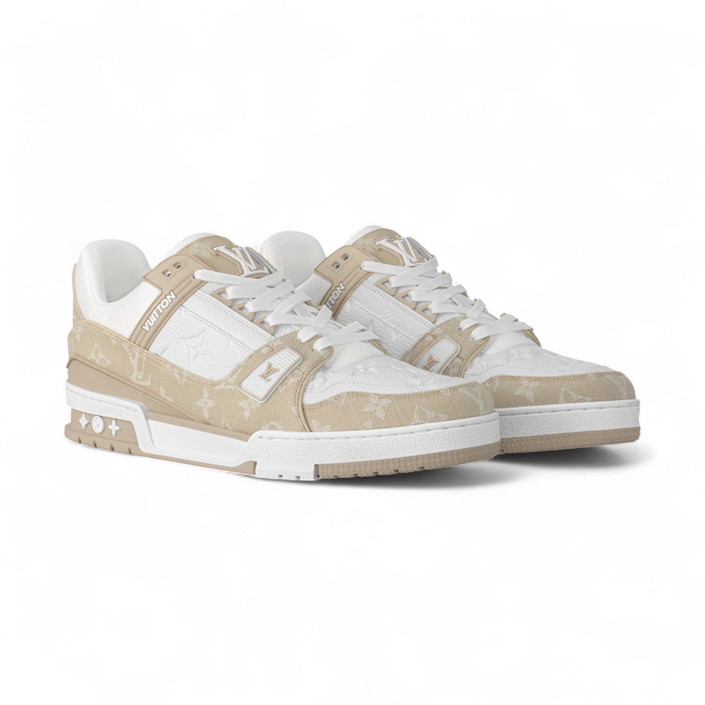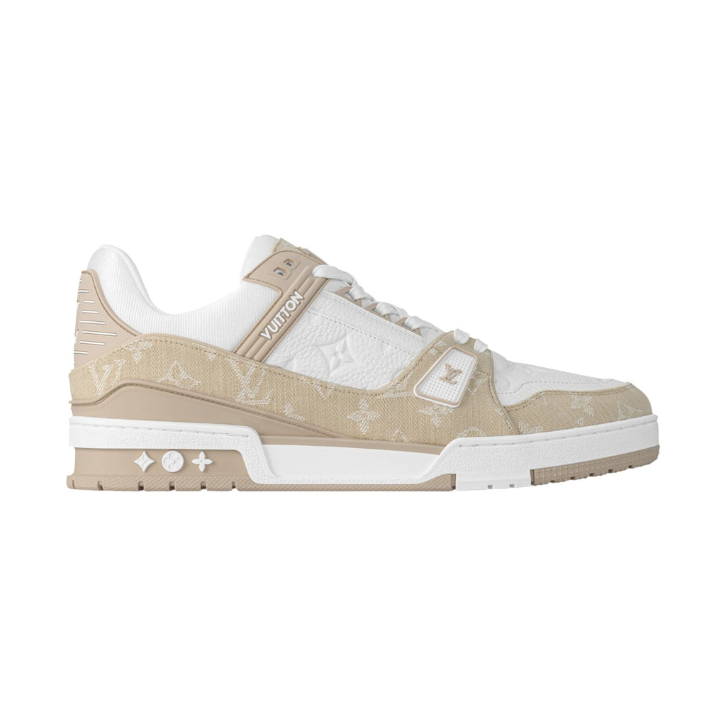 حذاء رياضي رجالي من LOUIS VUITTON DENIM MONOGRAM GRAINED من جلد العجل باللون البيج