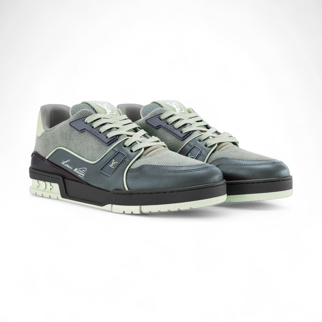 حذاء رياضي رجالي من لويس فيتون مصنوع من جلد العجل الناعم باللون الأخضر