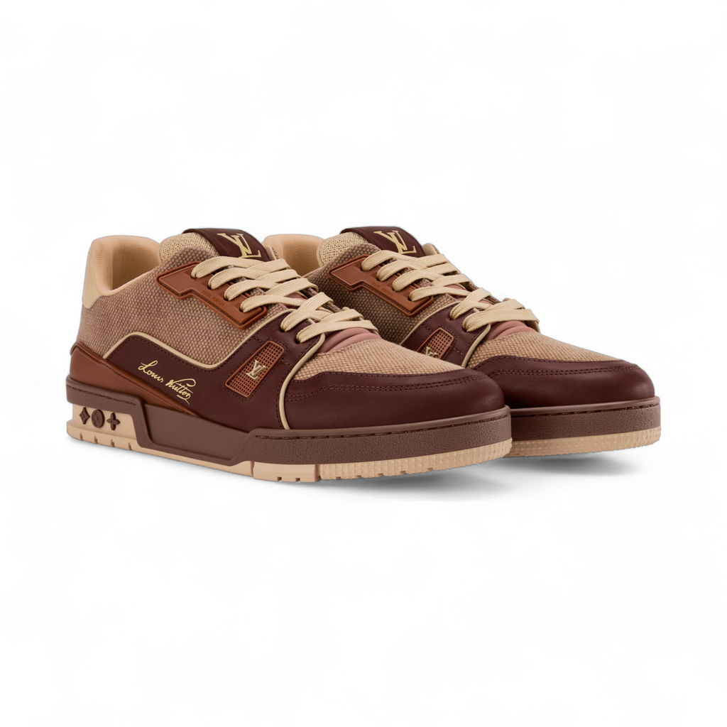 حذاء رياضي رجالي من لويس فيتون مصنوع من جلد العجل الناعم بلون بني