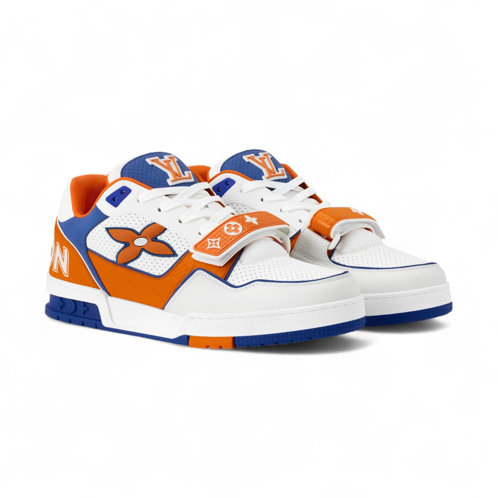 حذاء رياضي رجالي من لويس فيتون مصنوع من جلد العجل المثقب باللون البرتقالي