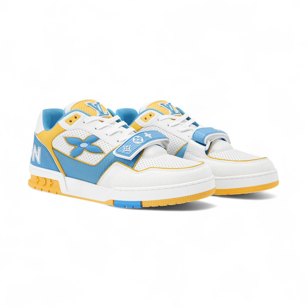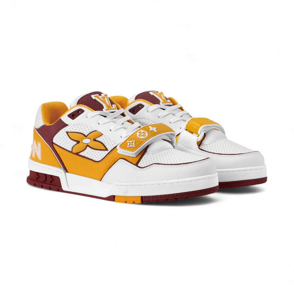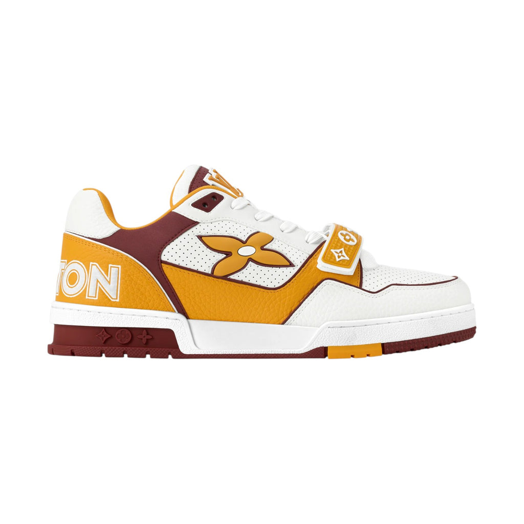 حذاء رياضي رجالي من لويس فيتون مصنوع من جلد العجل المثقب باللون الأصفر