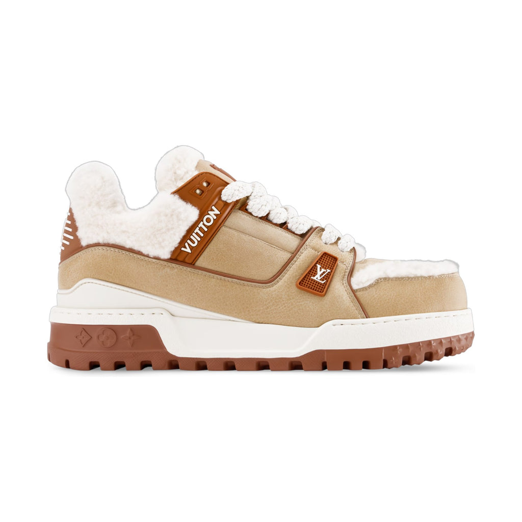 حذاء رياضي رجالي ماكسي من لويس فيتون مصنوع من جلد النوبوك باللون البيج