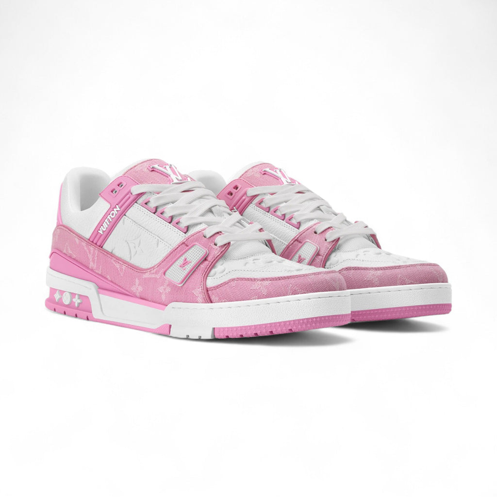 حذاء رياضي رجالي من LOUIS VUITTON DENIM MONOGRAM GRAINED من جلد العجل باللون الوردي