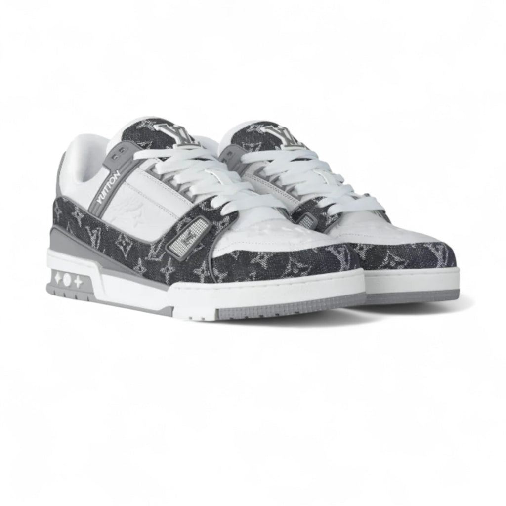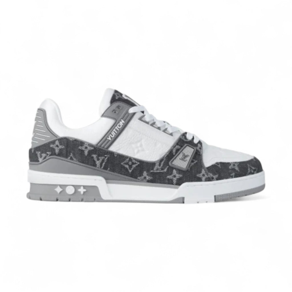 حذاء رياضي رجالي من LOUIS VUITTON DENIM MONOGRAM GRAINED من جلد العجل باللون الرمادي