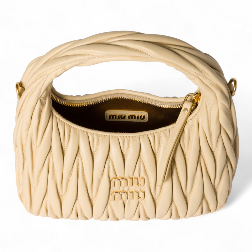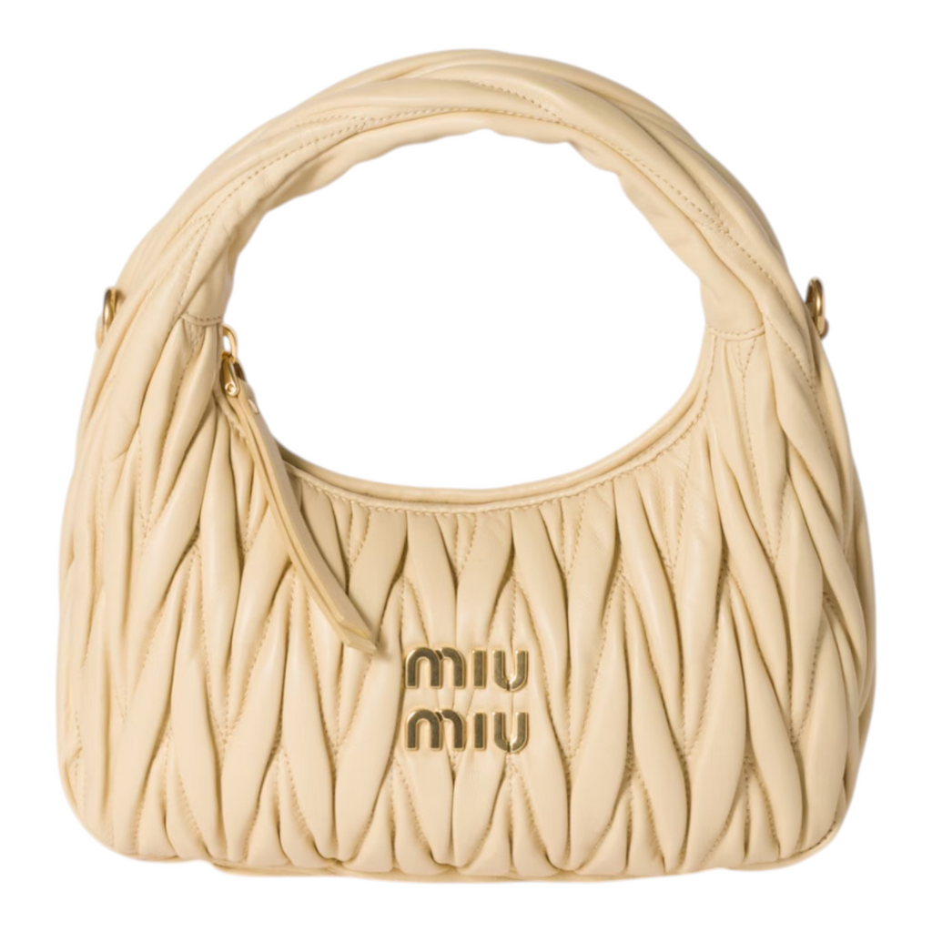 MIU MIU SMALL WANDER MATELASSE NAPPA LEATHER WOMEN BEIGE HOBO BAG