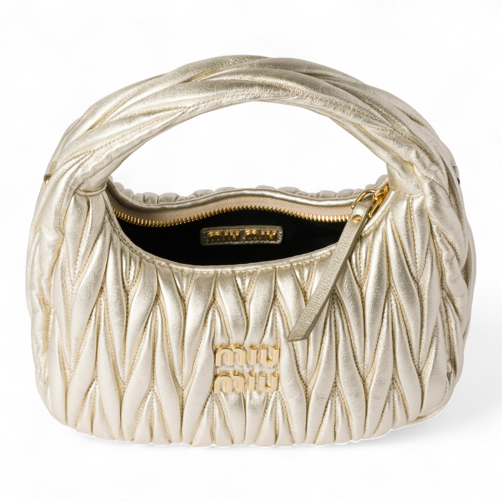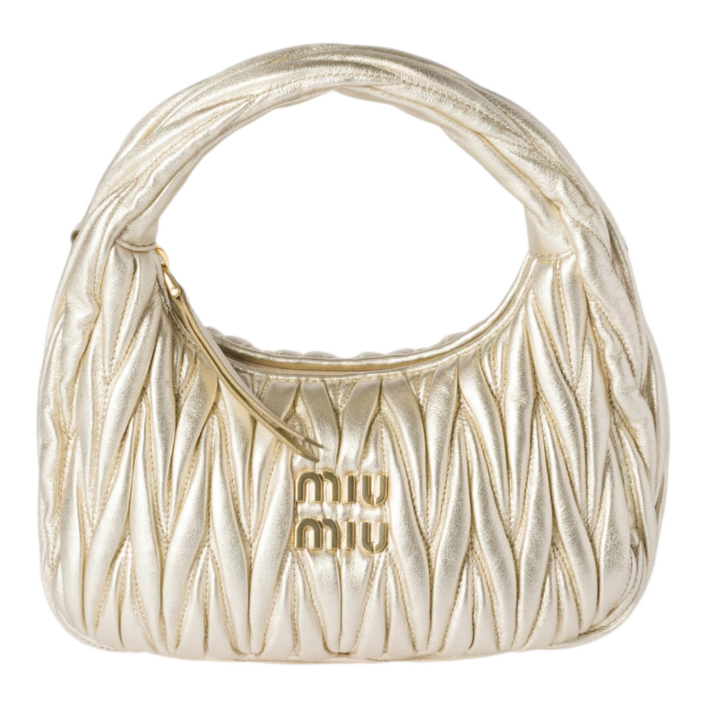 MIU MIU SMALL WANDER MATELASSE NAPPA LEATHER WOMEN GOLD HOBO BAG