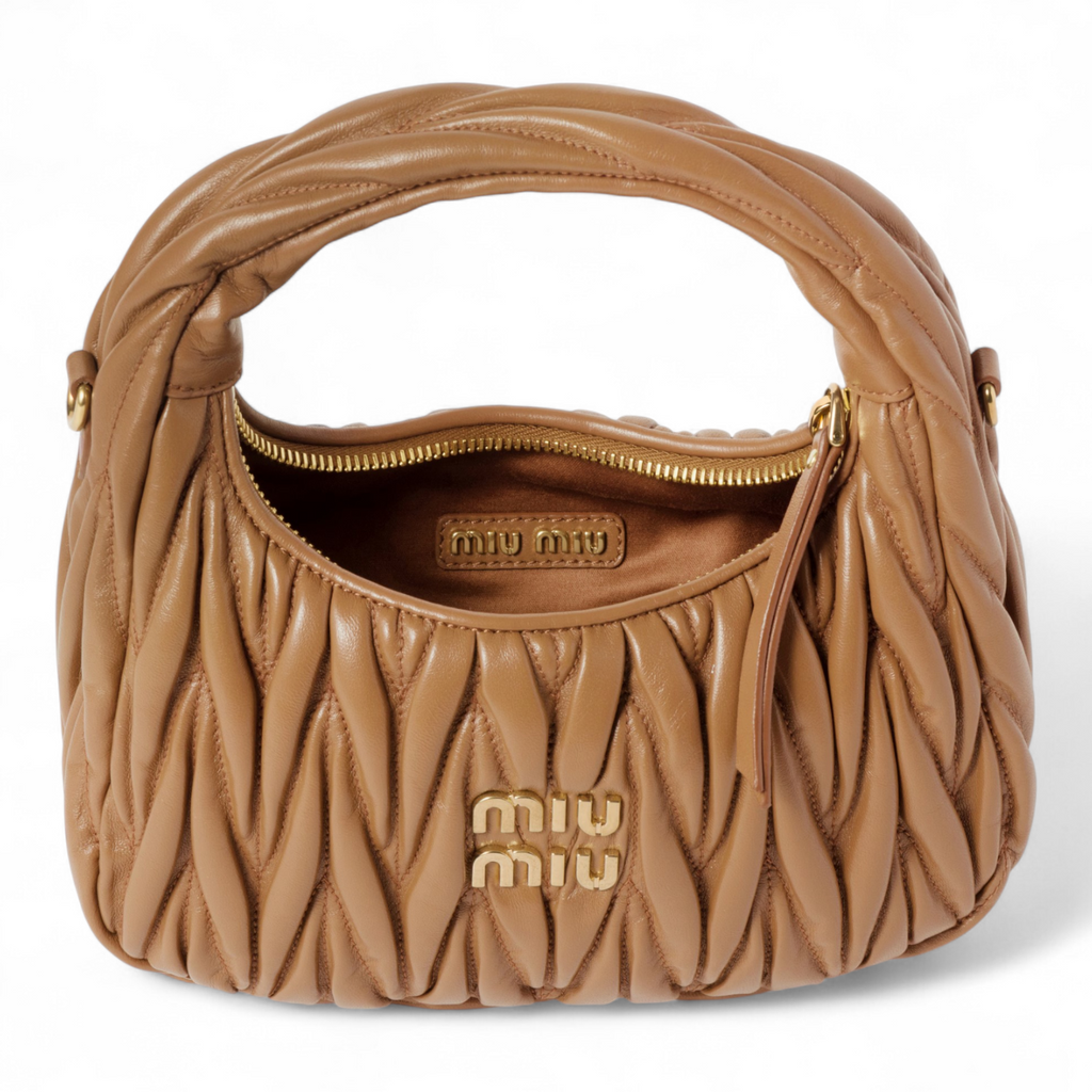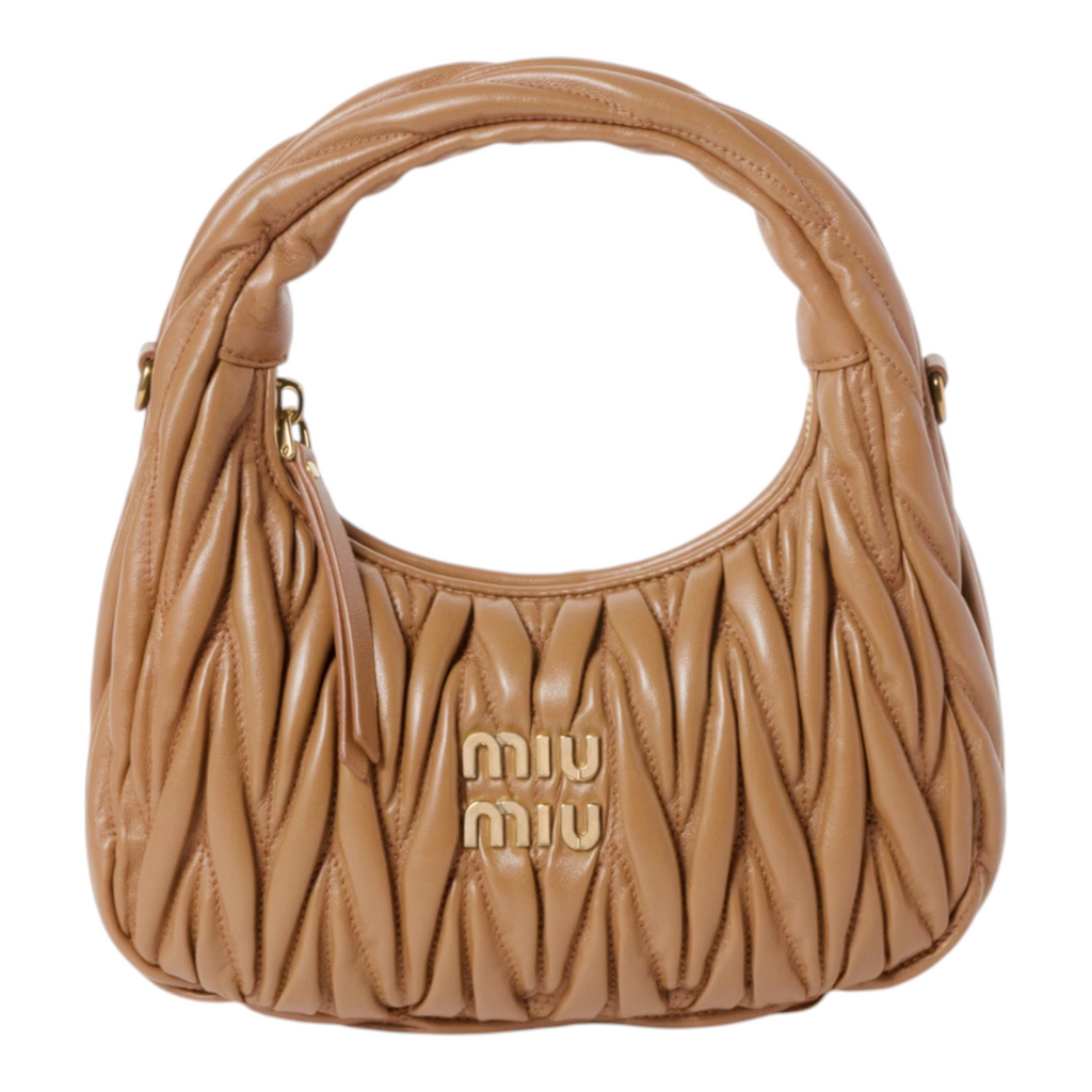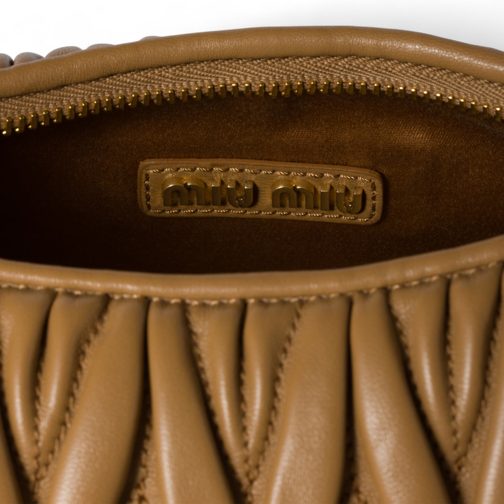 MIU MIU SMALL WANDER MATELASSE NAPPA LEATHER WOMEN LIGHT BROWN HOBO BAG