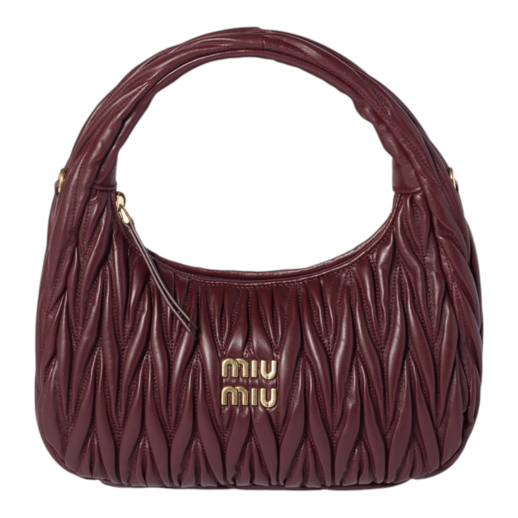 MIU MIU REGULAR WANDER MATELASSE NAPPA LEATHER WOMEN BURGUNDY HOBO BAG
