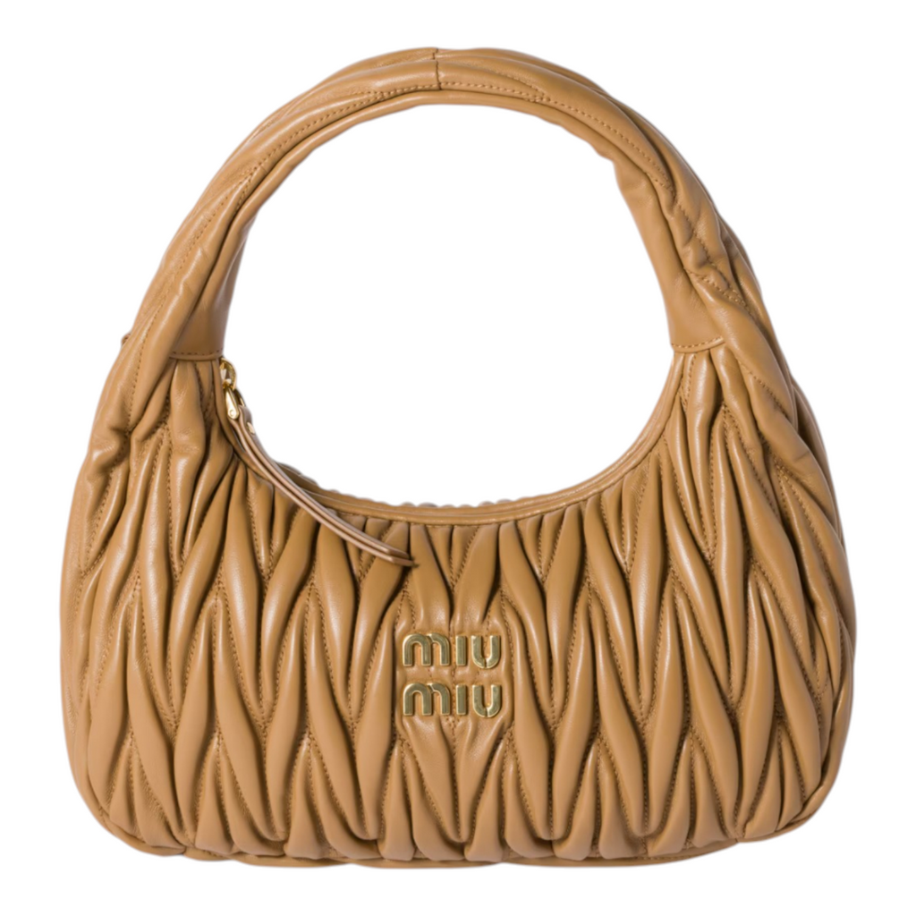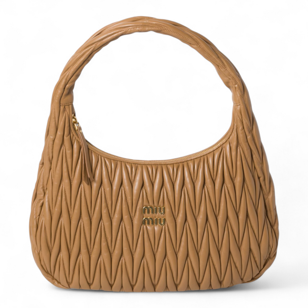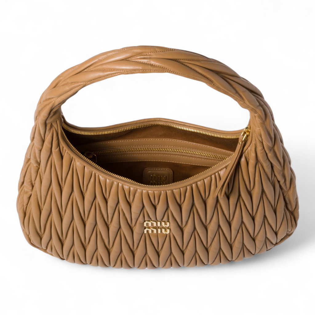 MIU MIU MEDIUM WANDER MATELASSE NAPPA LEATHER WOMEN LIGHT BROWN HOBO BAG