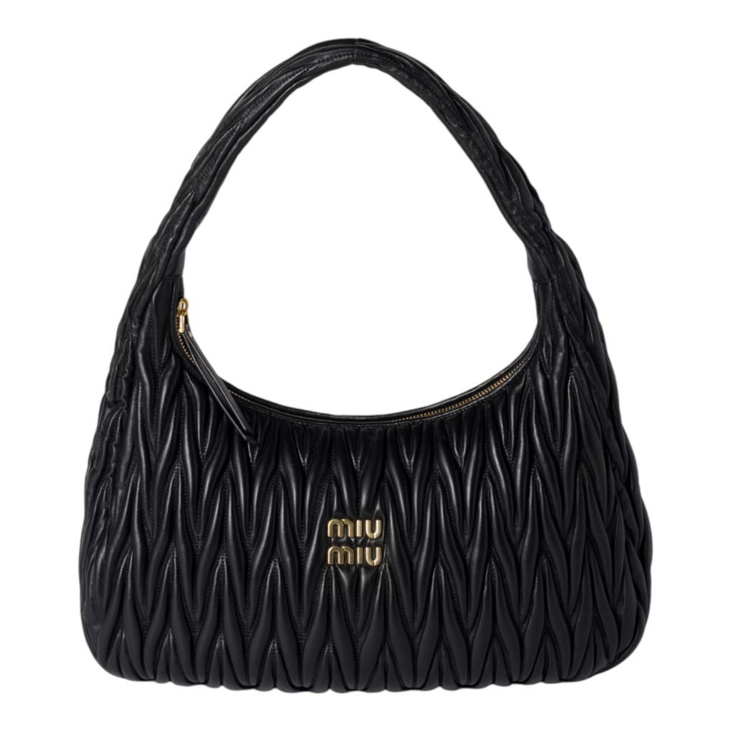 MIU MIU REGULAR WANDER MATELASSE NAPPA LEATHER WOMEN BLACK HOBO BAG