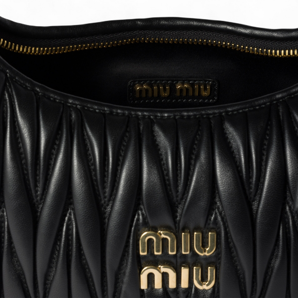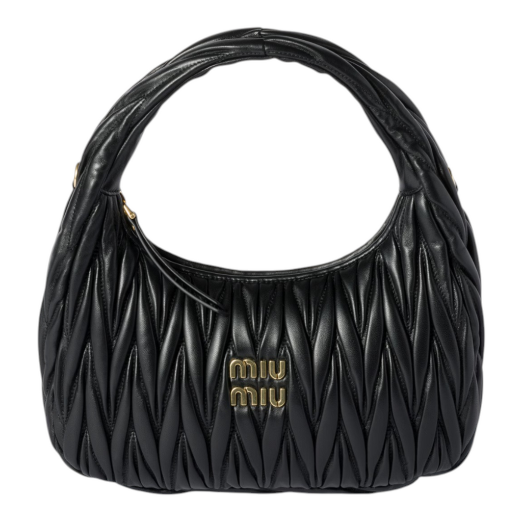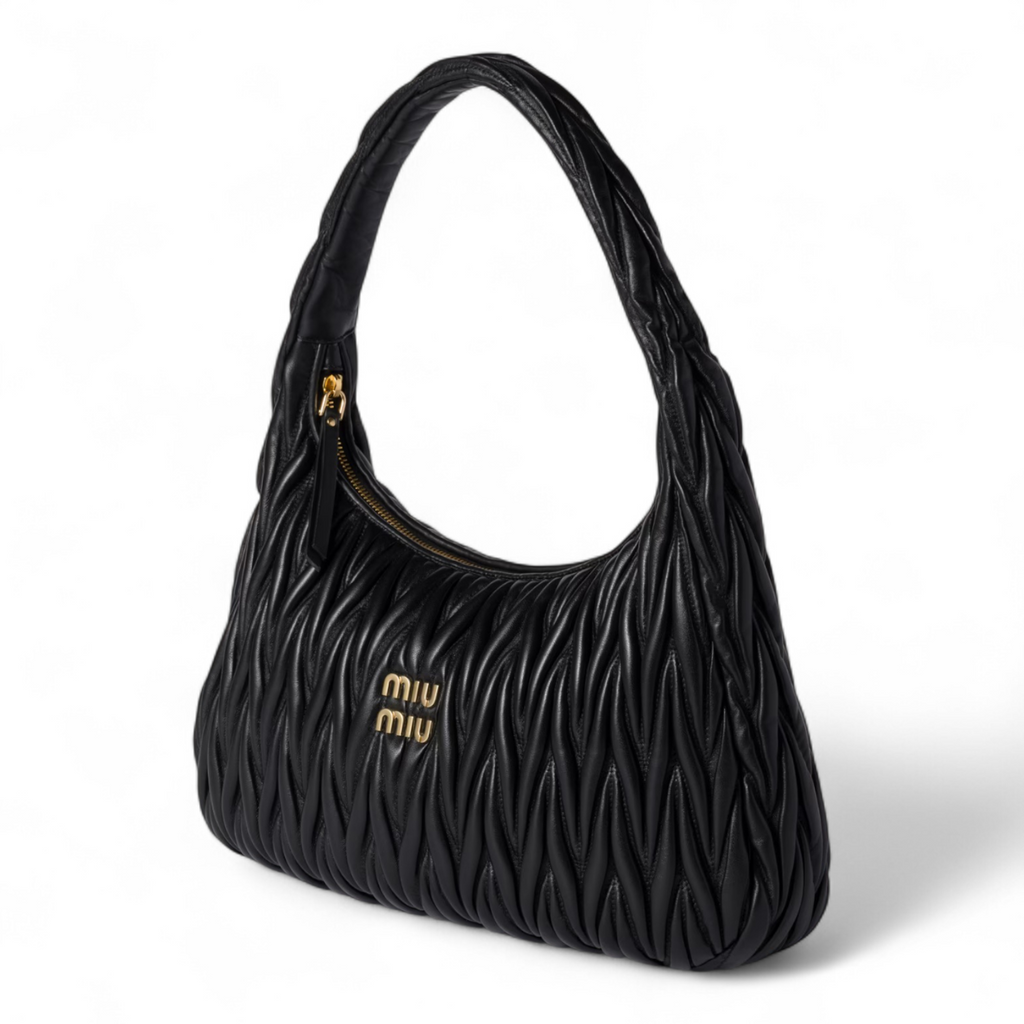 MIU MIU MEDIUM WANDER MATELASSE NAPPA LEATHER WOMEN BLACK HOBO BAG