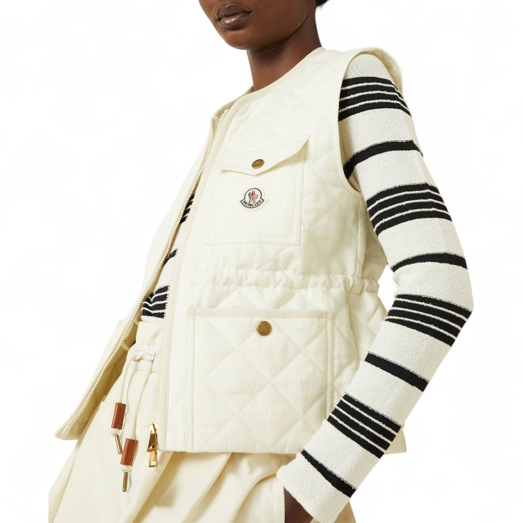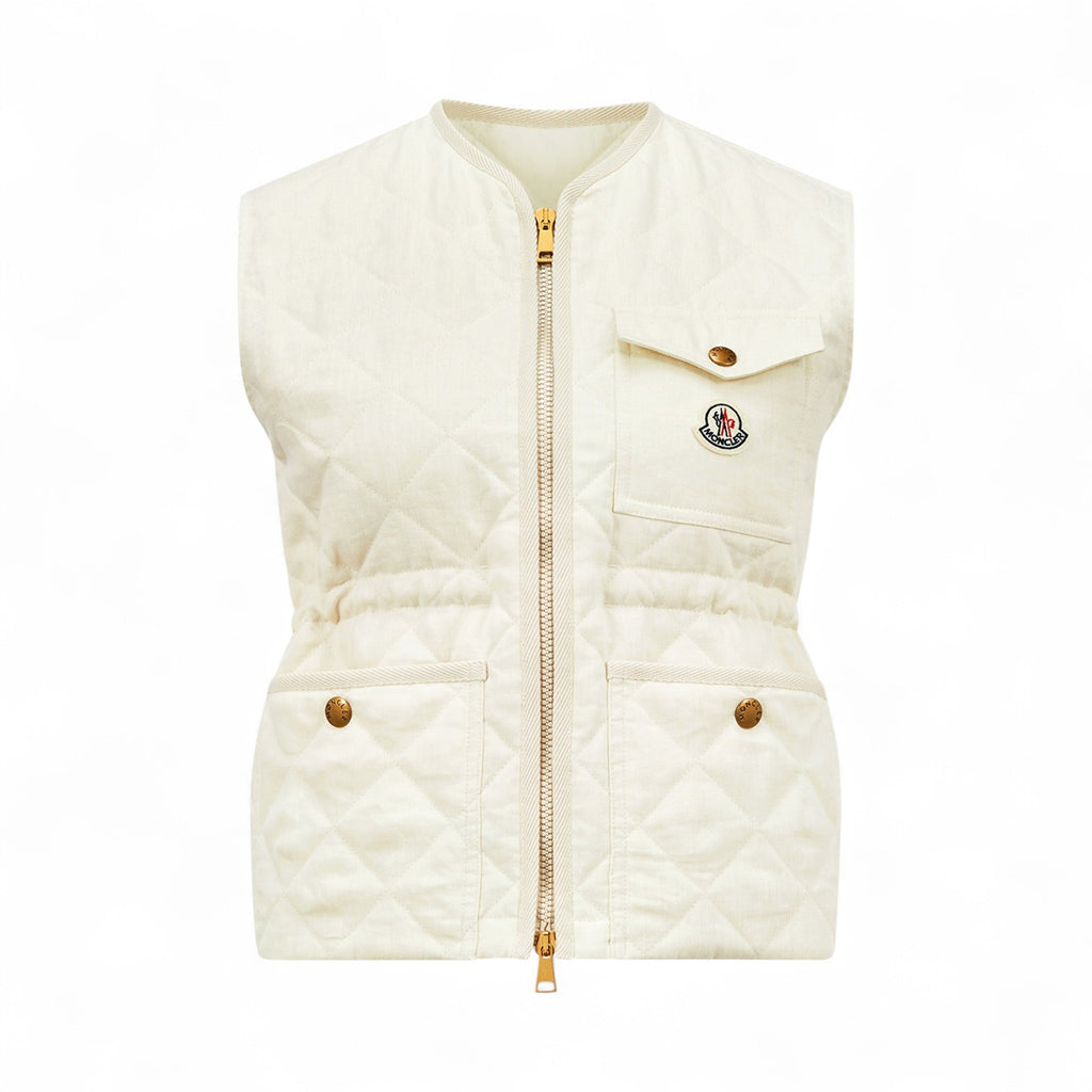 سترة مونكلير فيني المبطنة من الكتان للنساء باللون الأبيض