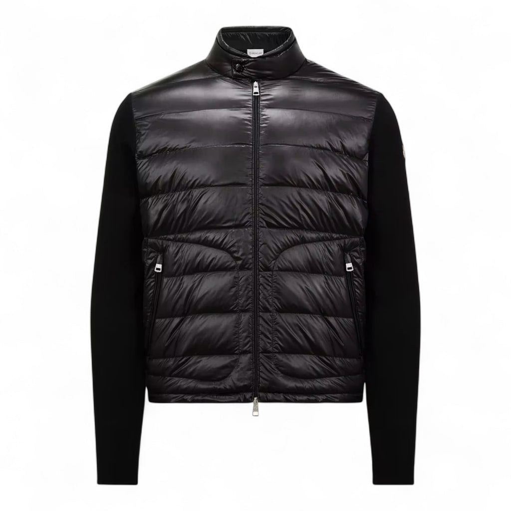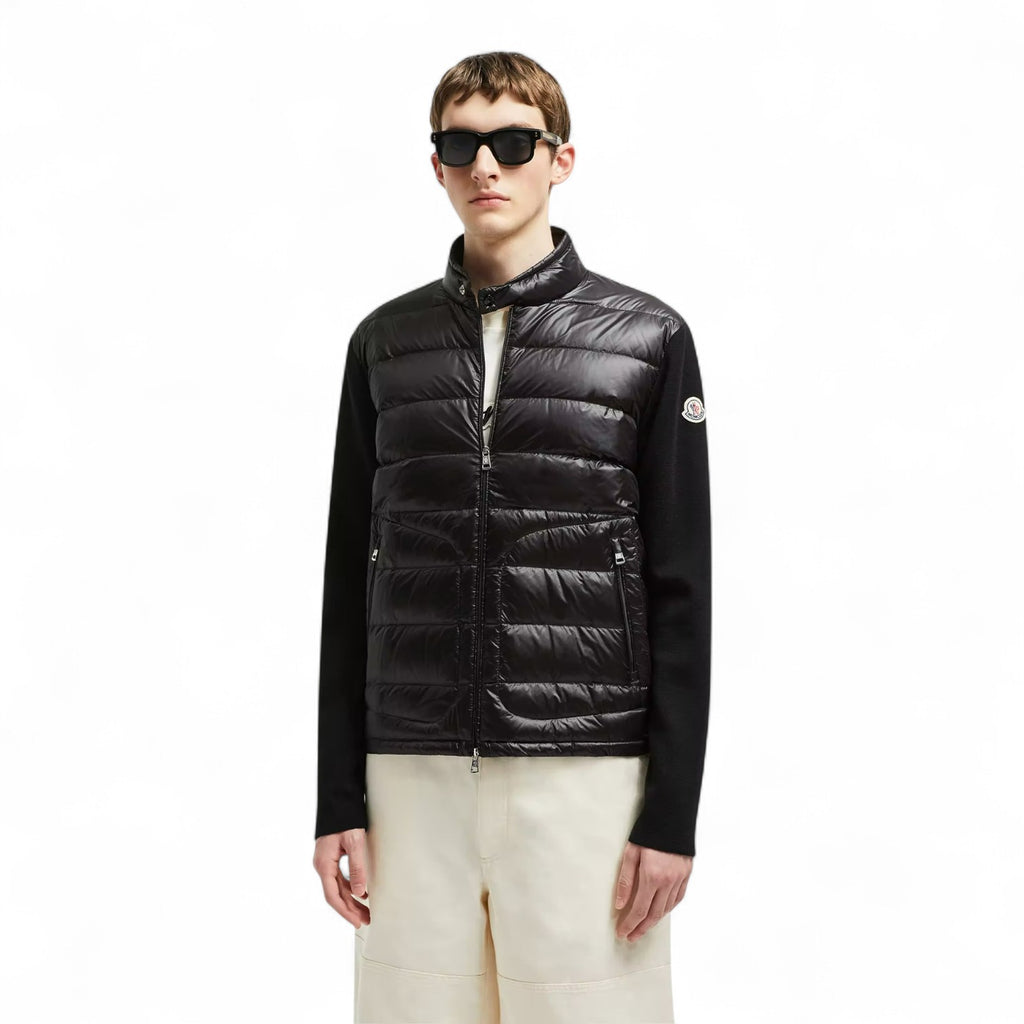جاكيت مونكلير أسود بسحاب من الصوف المبطن