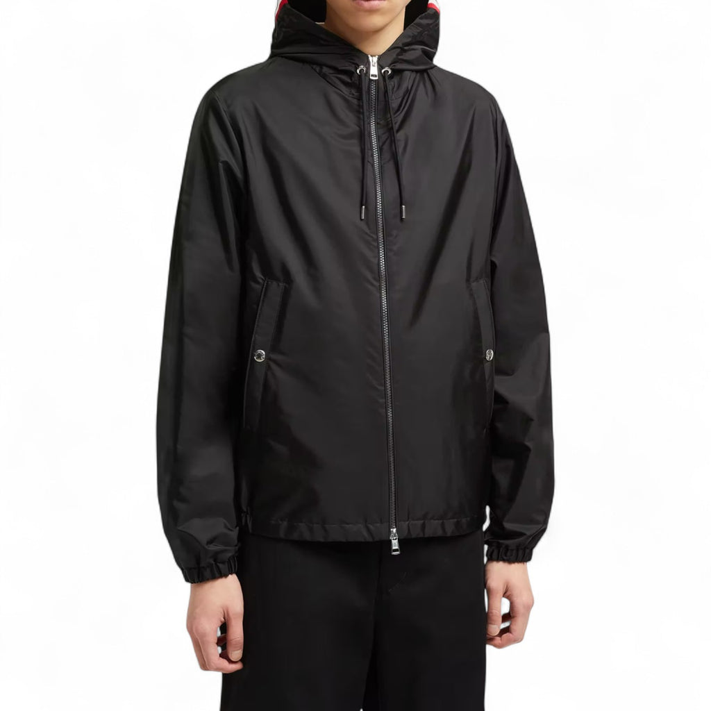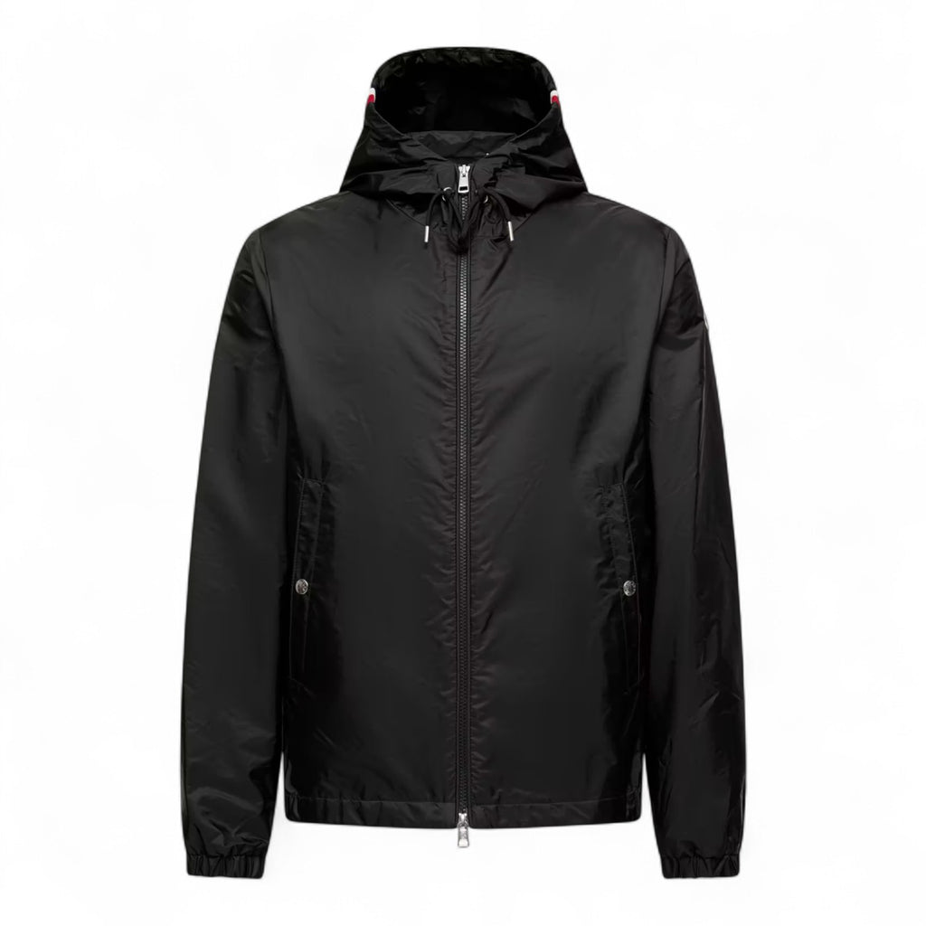 جاكيت مونكلير نايلون مقاوم للماء للرجال، أسود، بغطاء رأس