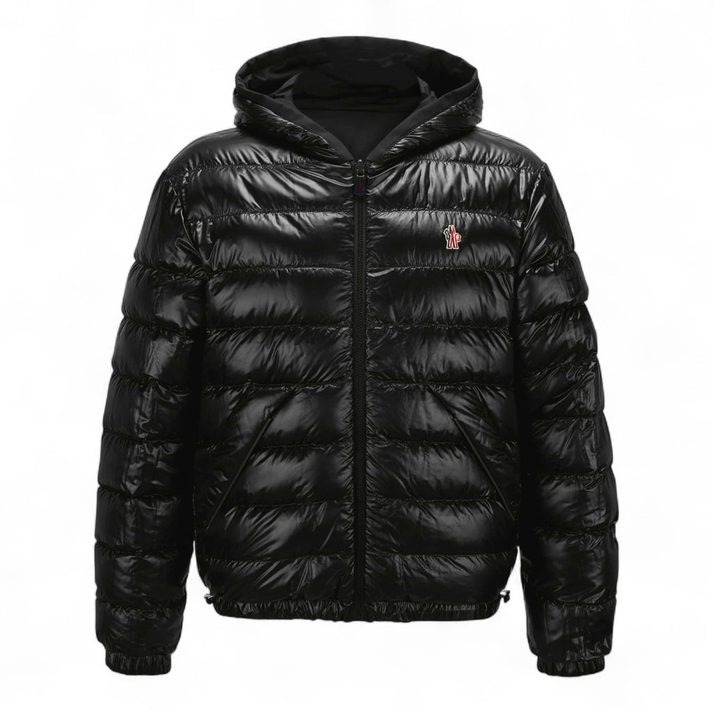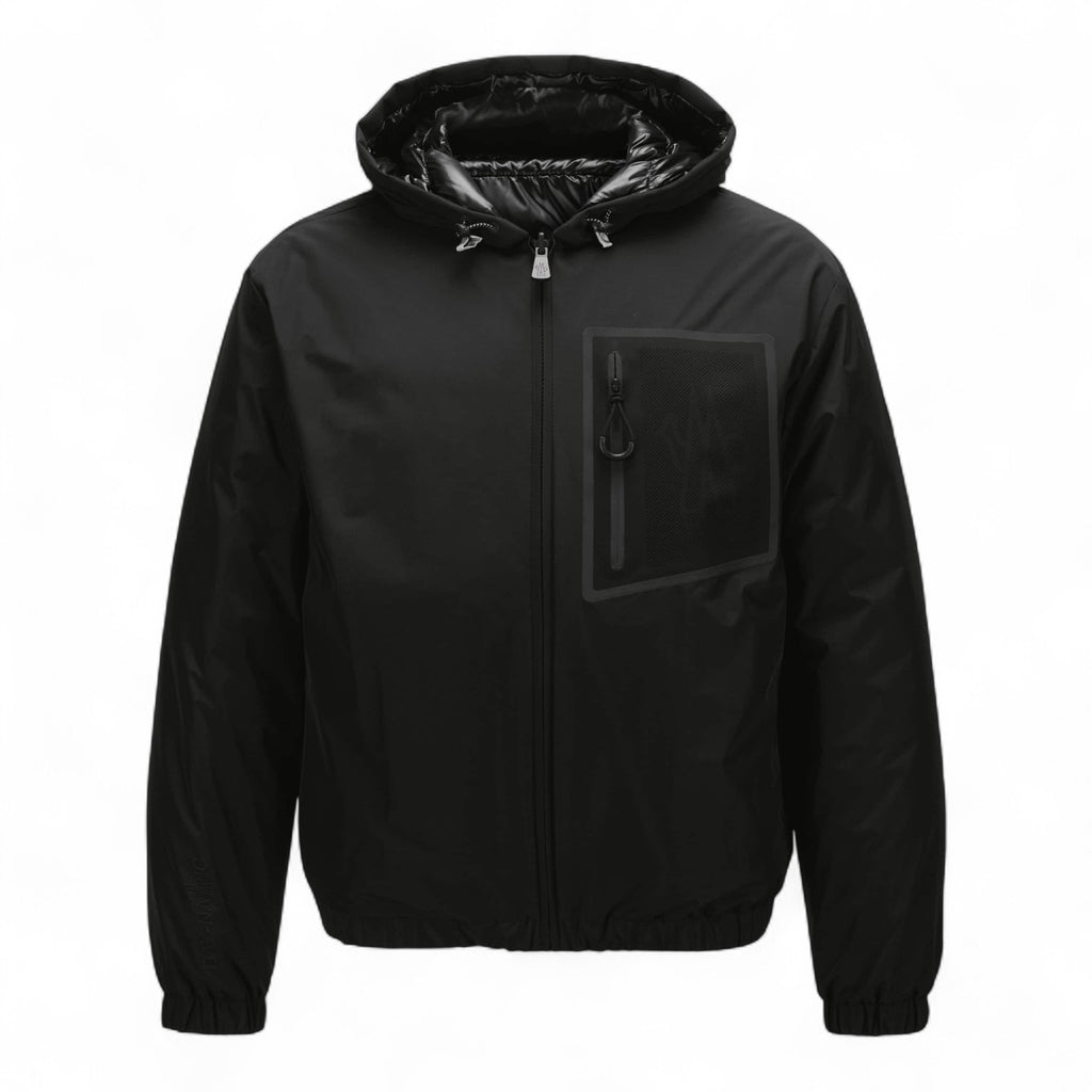 جاكيت أسود مبطن بسحاب وشعار مونكلير
