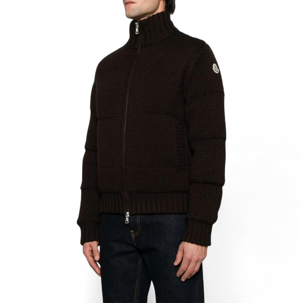 جاكيت مونكلير رجالي مبطن من الصوف البكر باللون البني