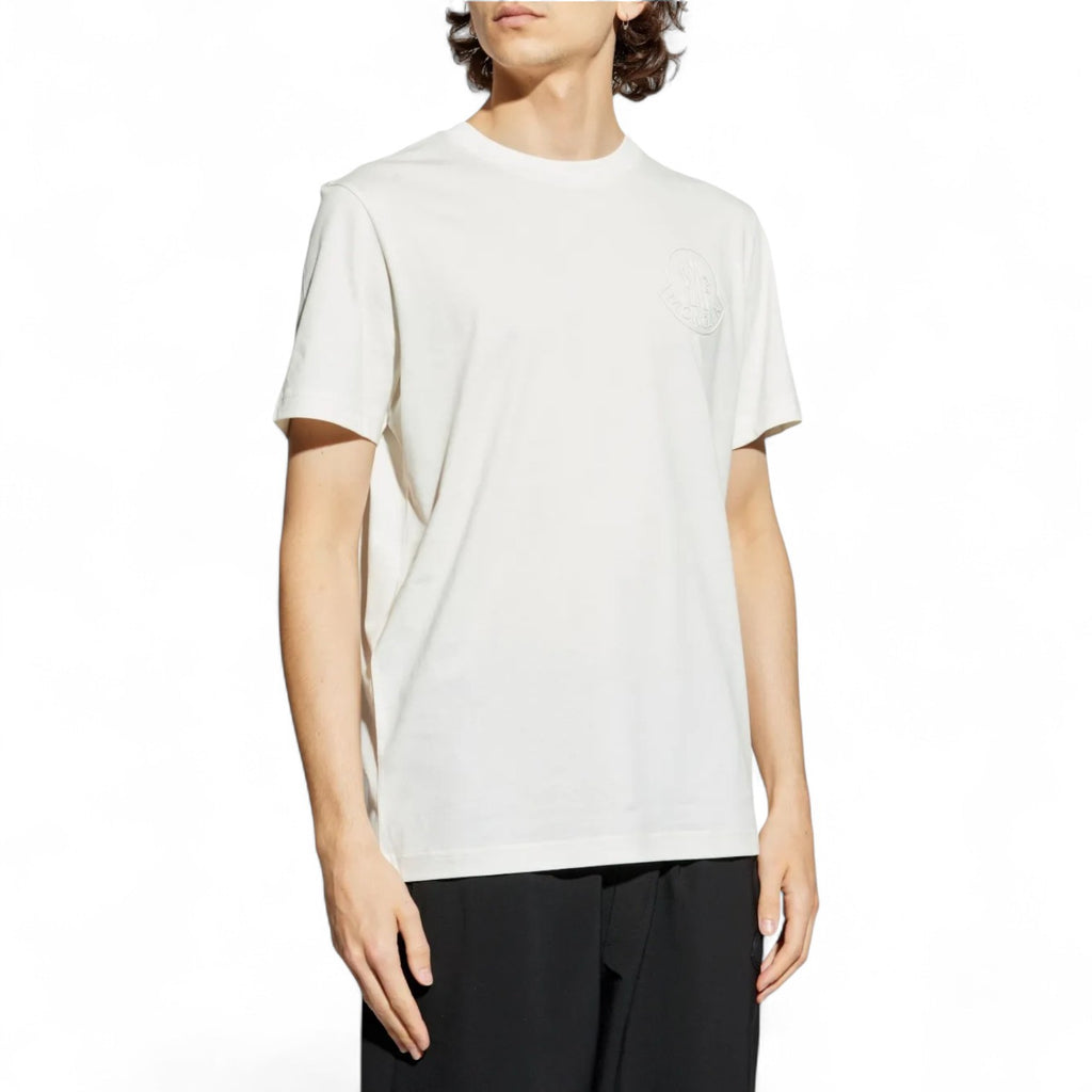 تيشيرت مونكلير قطني أبيض منقوش بشعار مونكلير
