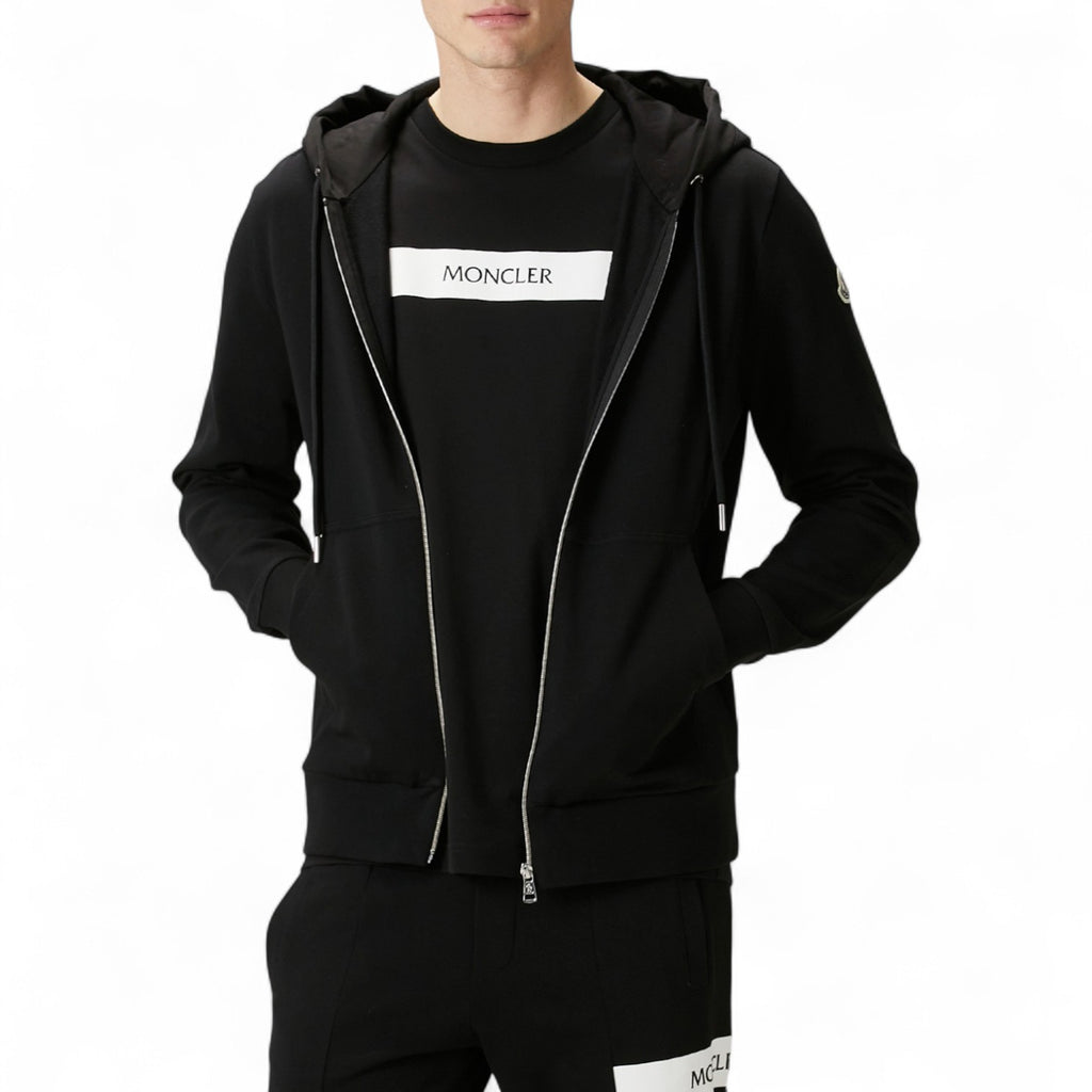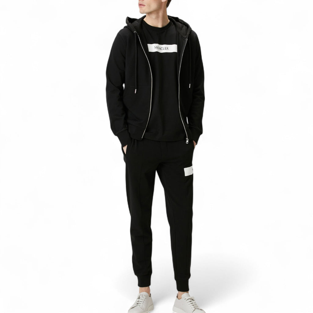هودي رجالي أسود بسحاب وتفاصيل شعار مونكلير