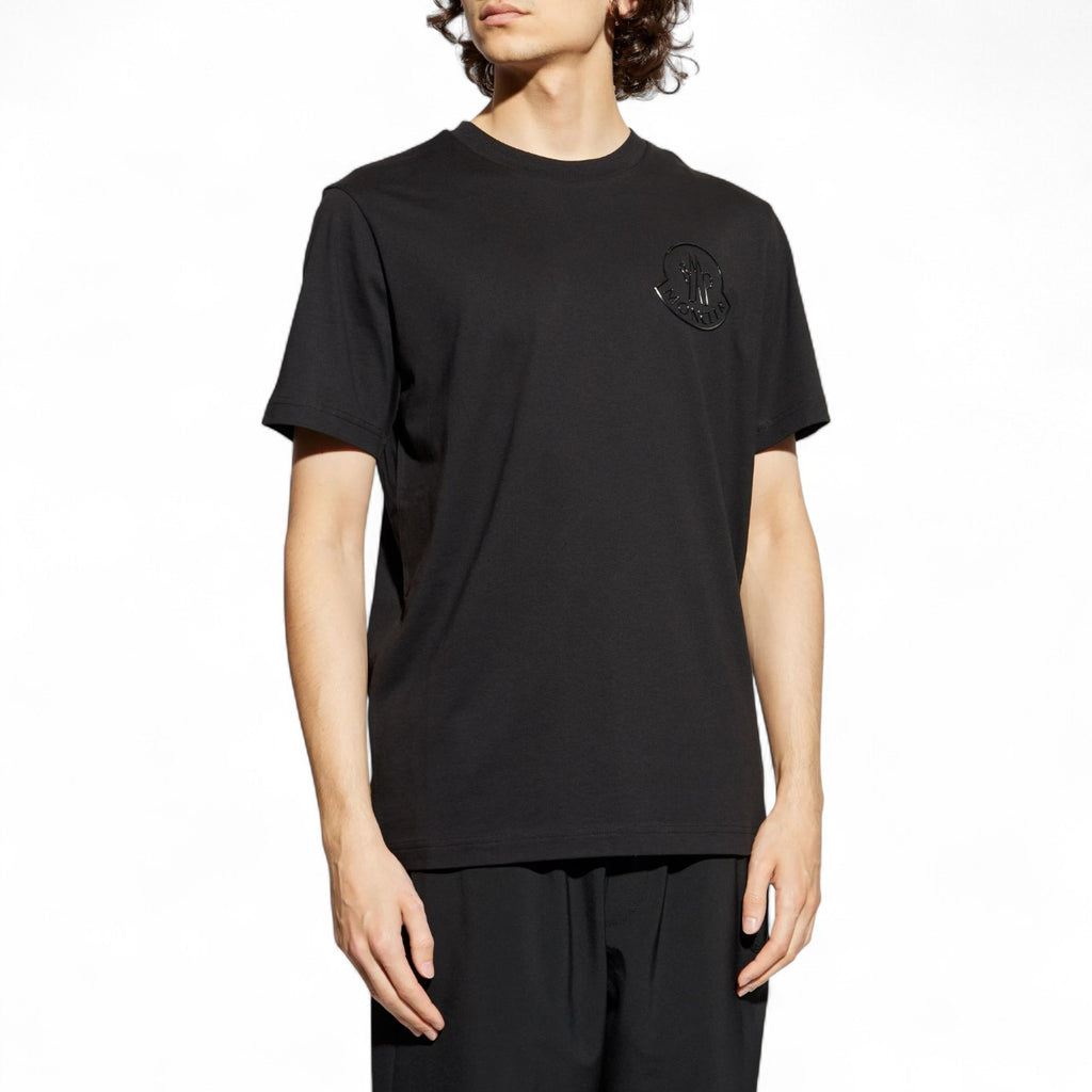 تيشيرت مونكلير قطني أسود منقوش بشعار مونكلير