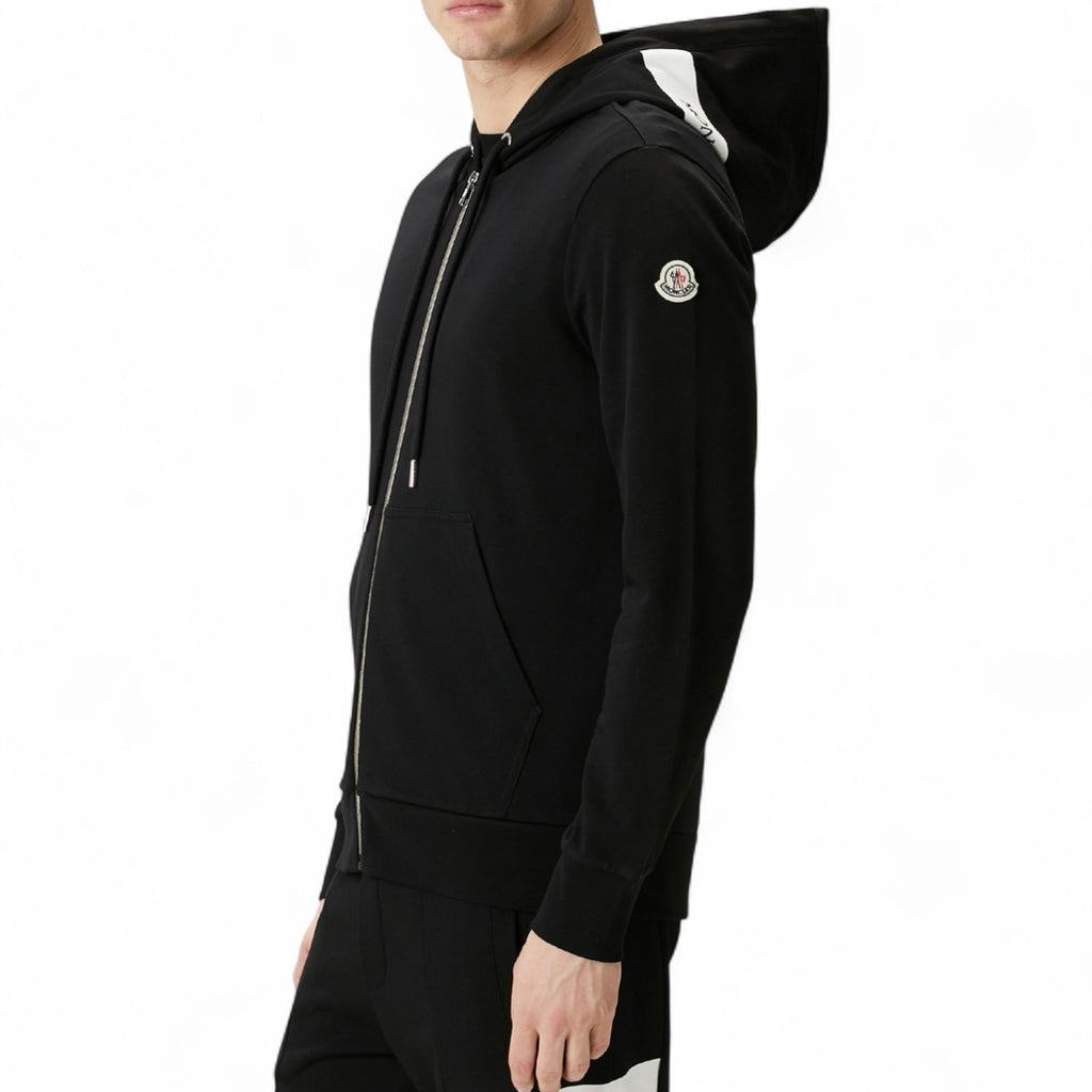 هودي رجالي أسود بسحاب وتفاصيل شعار مونكلير