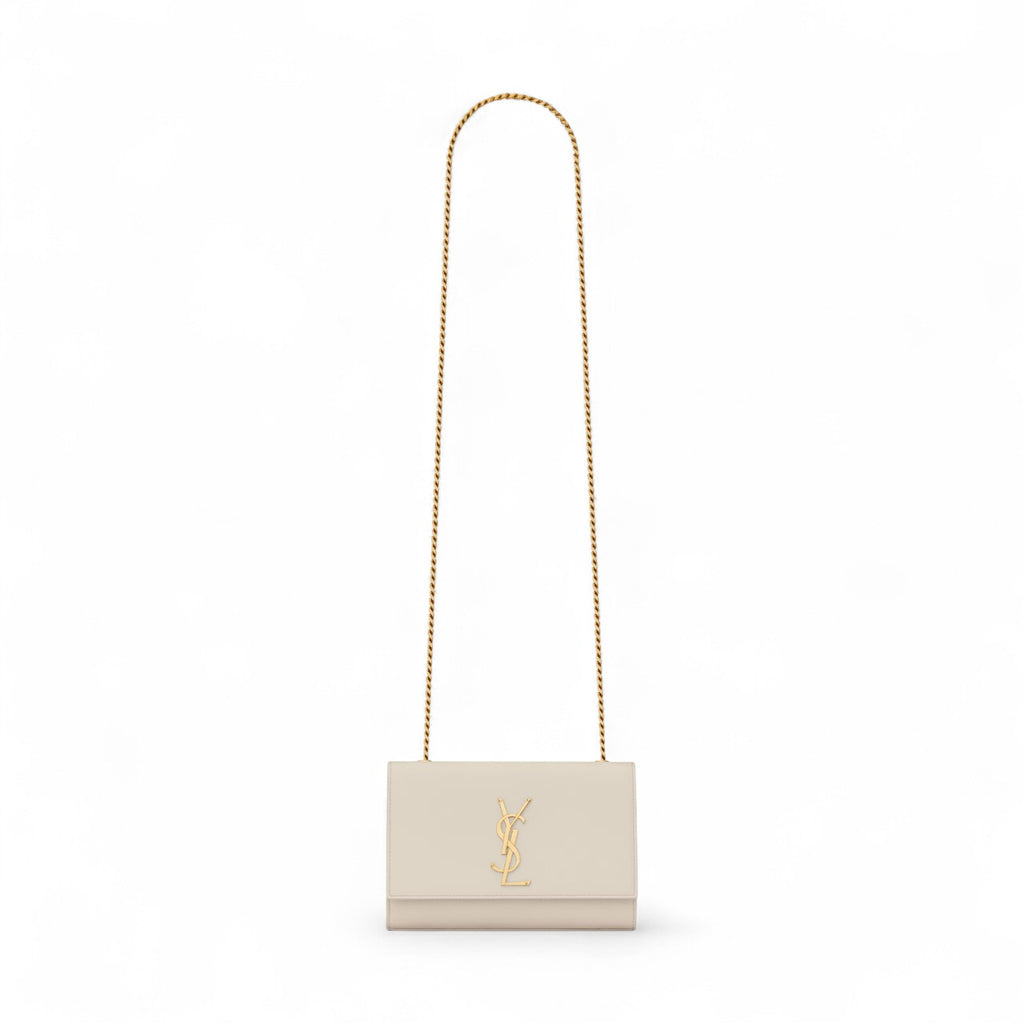 حقيبة سان لوران كيت صغيرة من الجلد الأبيض المنقوش بحبيبات البودر