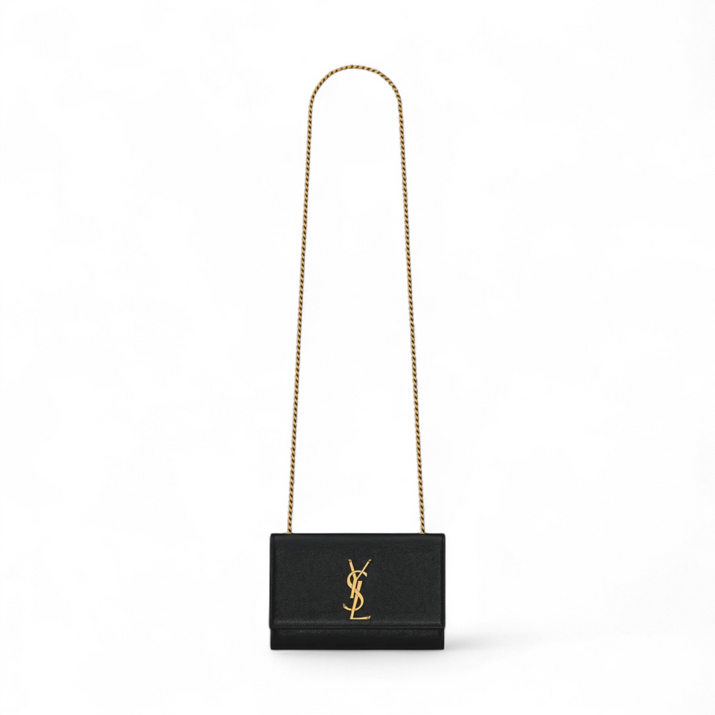 حقيبة سان لوران كيت صغيرة من الجلد الأسود المنقوش بحبيبات البودر