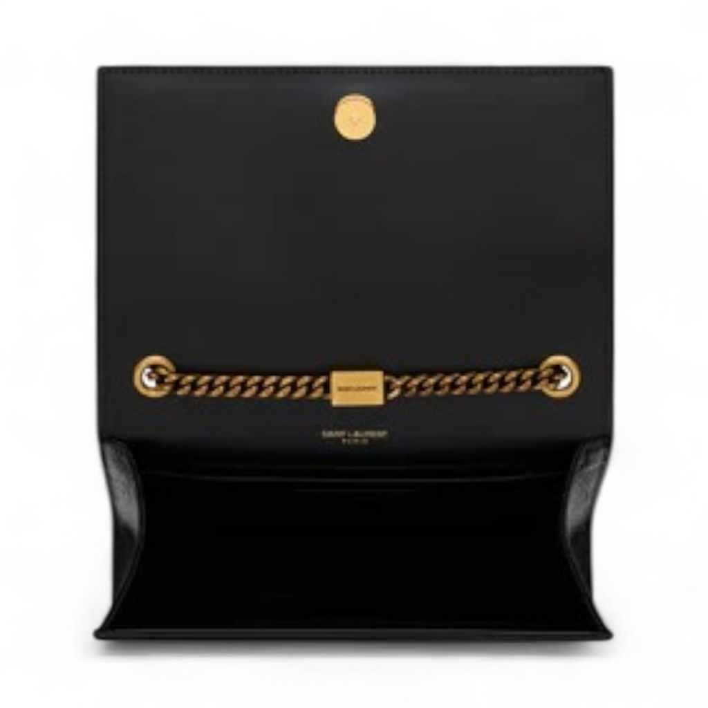 حقيبة سان لوران كيت سمول المصنوعة من الجلد الأسود اللامع