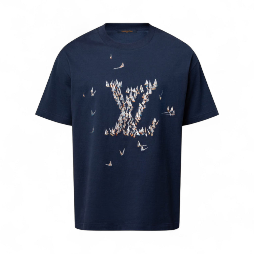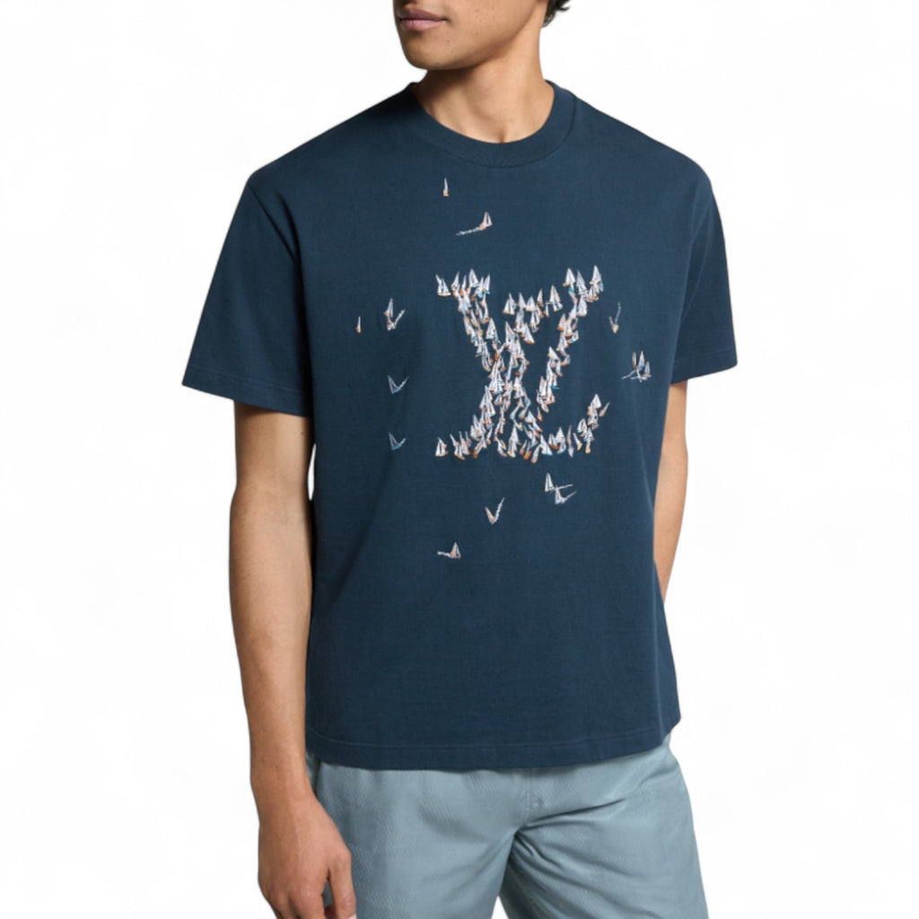 تي شيرت لويس فيتون مطرز من القطن باللون الأزرق الداكن
