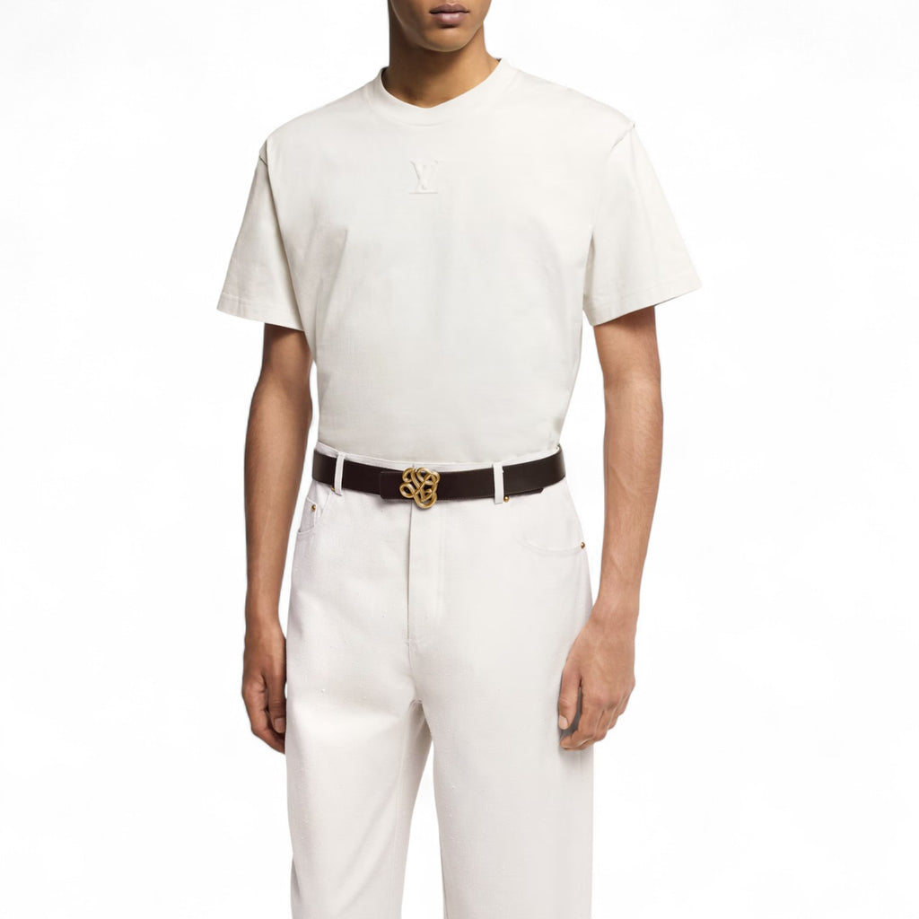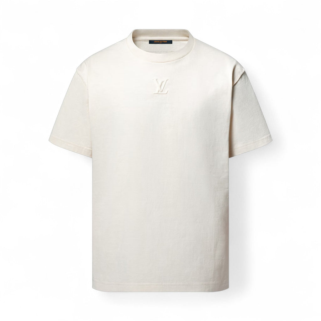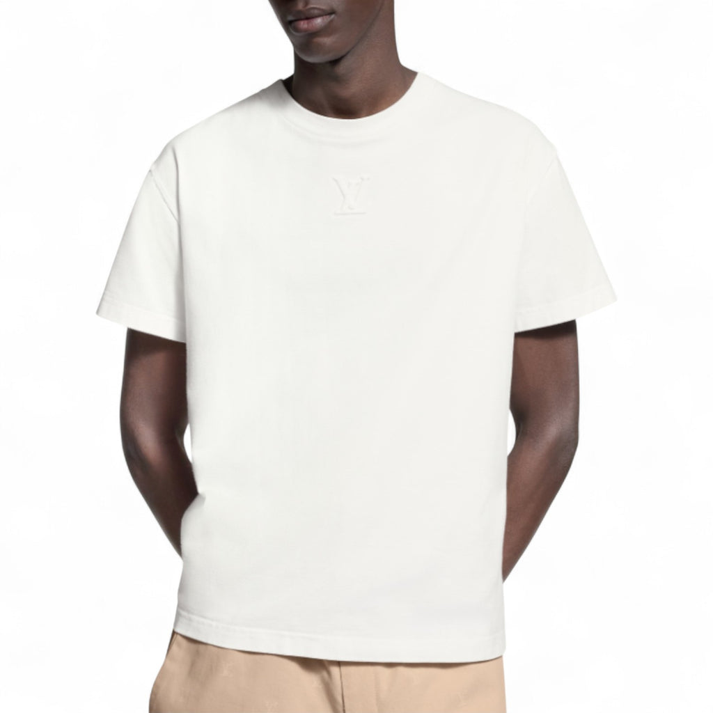 تيشيرت لويس فيتون من القطن الأبيض المنقوش بشعار LV