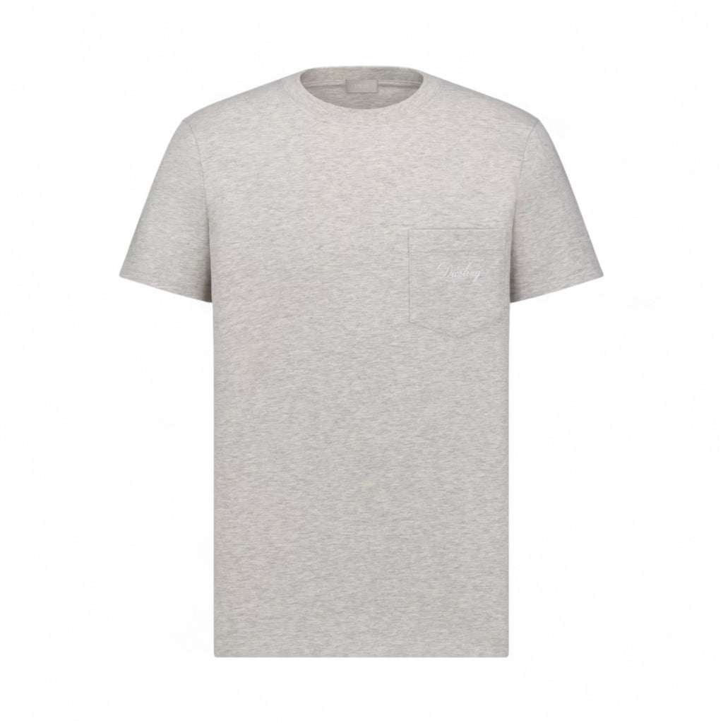 تي شيرت ديور ديورلينج بقصة عادية من القطن الأبيض والرمادي