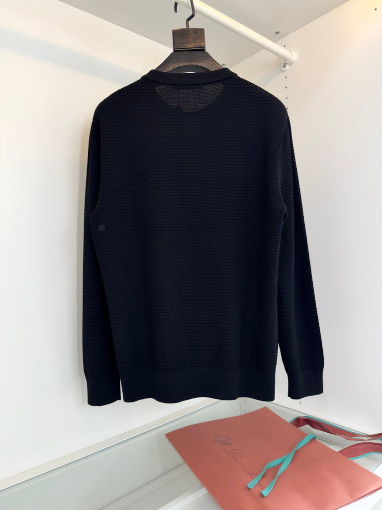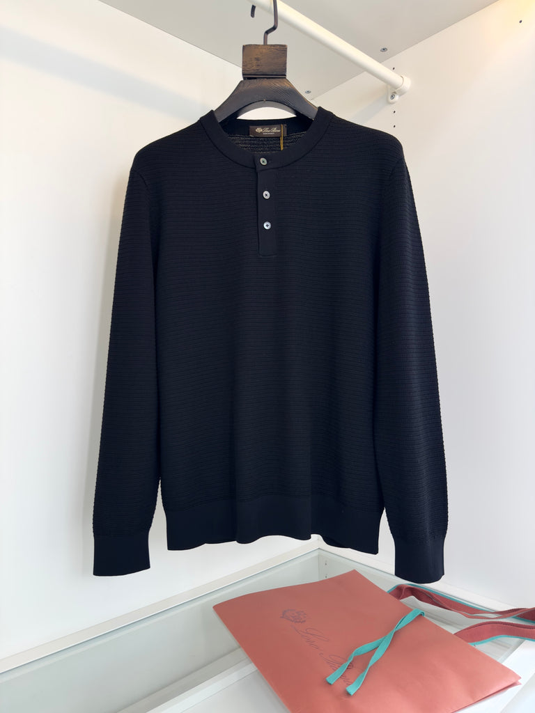 سويت شيرت أسود منسوج بياقة هينلي من لورو بيانا