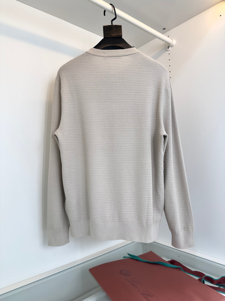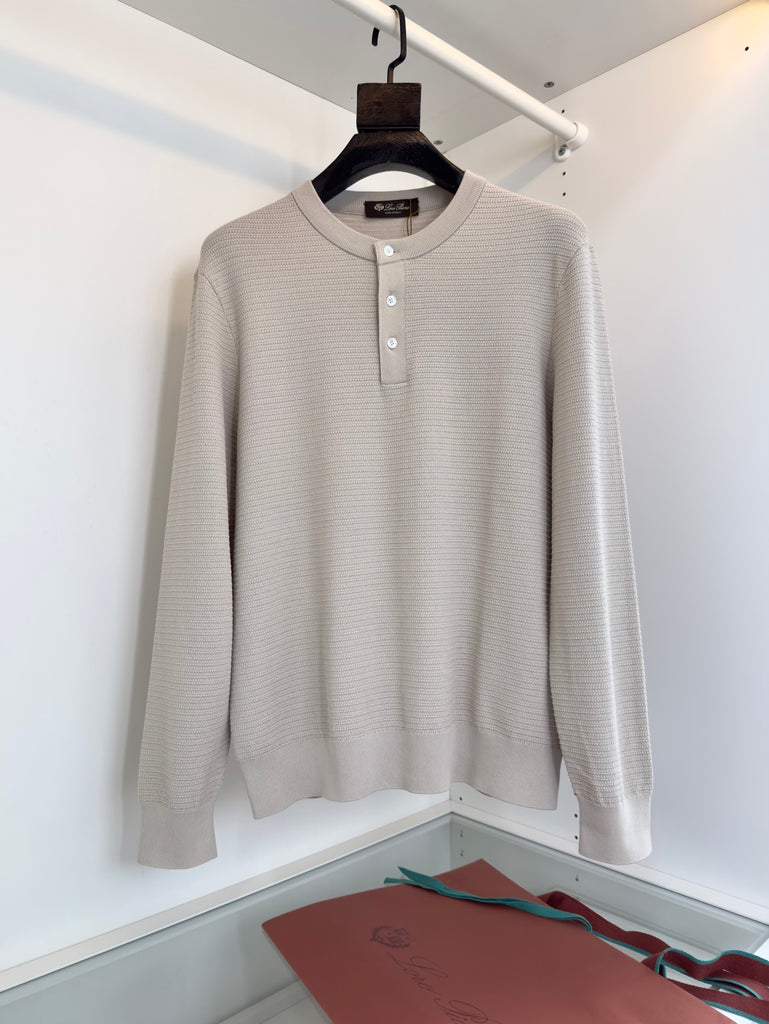 سويت شيرت لورو بيانا منسوج بياقة هنلي وبيج