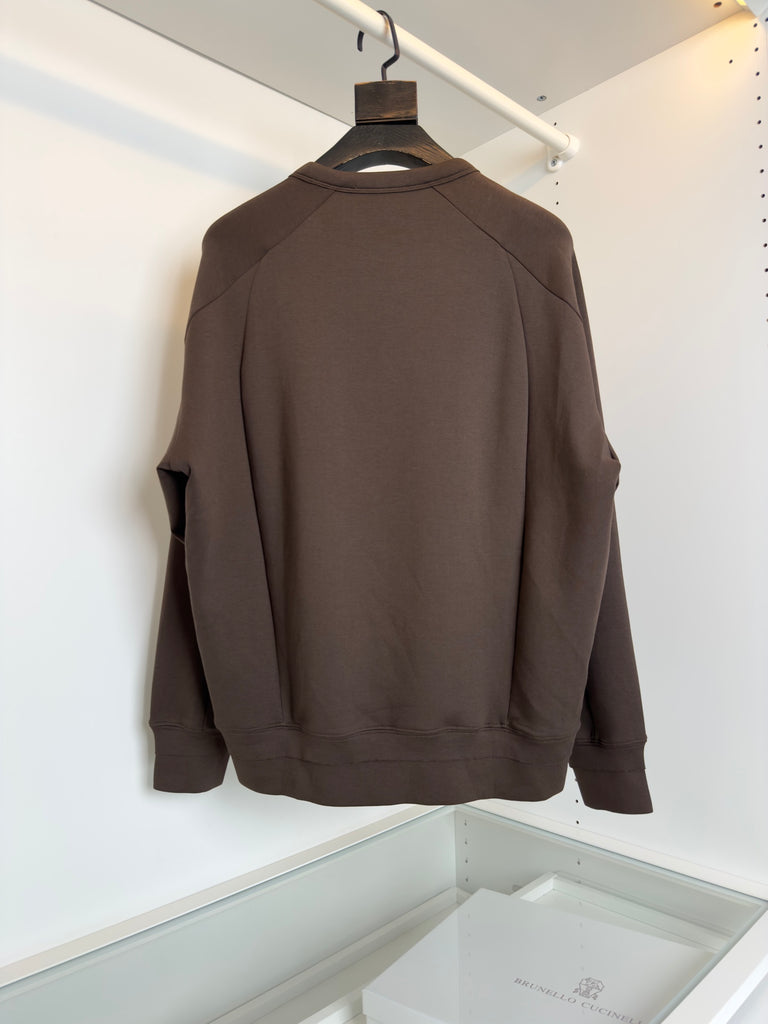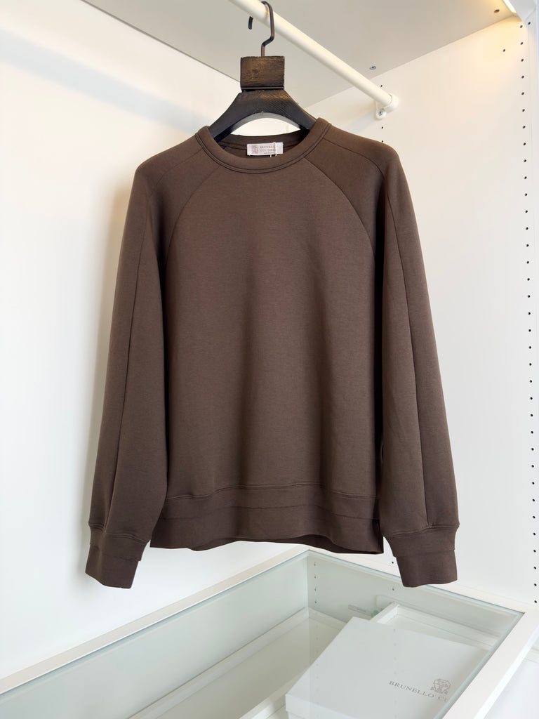سويت شيرت برونيللو كوتشينيلي بتصميم هندسي هيكلي بسيط بلون الشوكولاتة