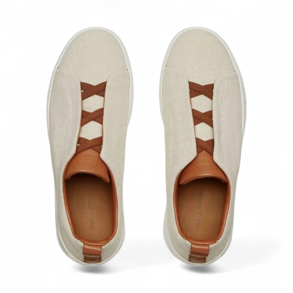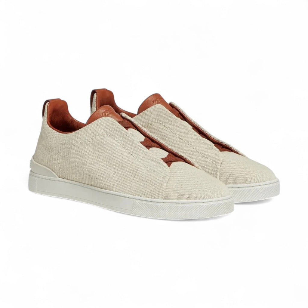 حذاء رياضي رجالي من قماش زينيا باللون الأبيض العتيق بغرز ثلاثية