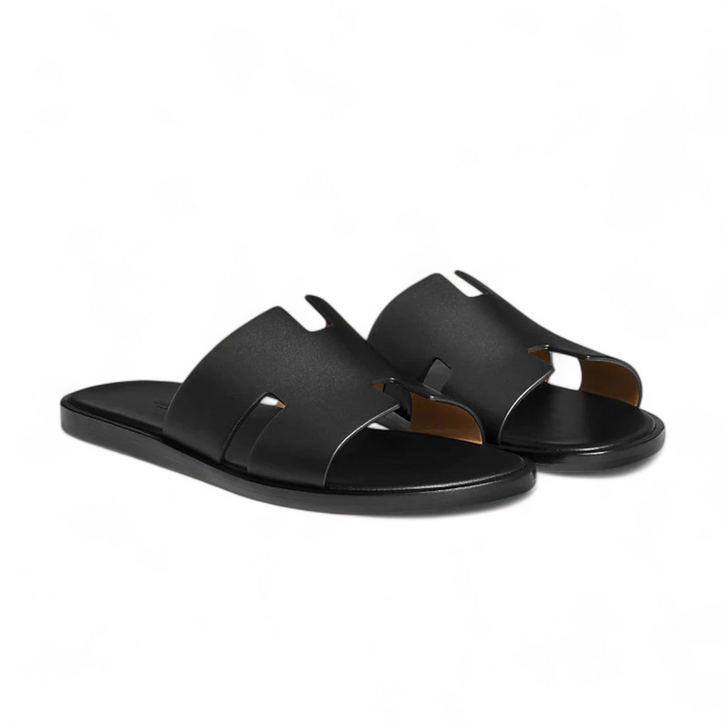 صندل هيرمس شيبر أسود من جلد العجل للنساء