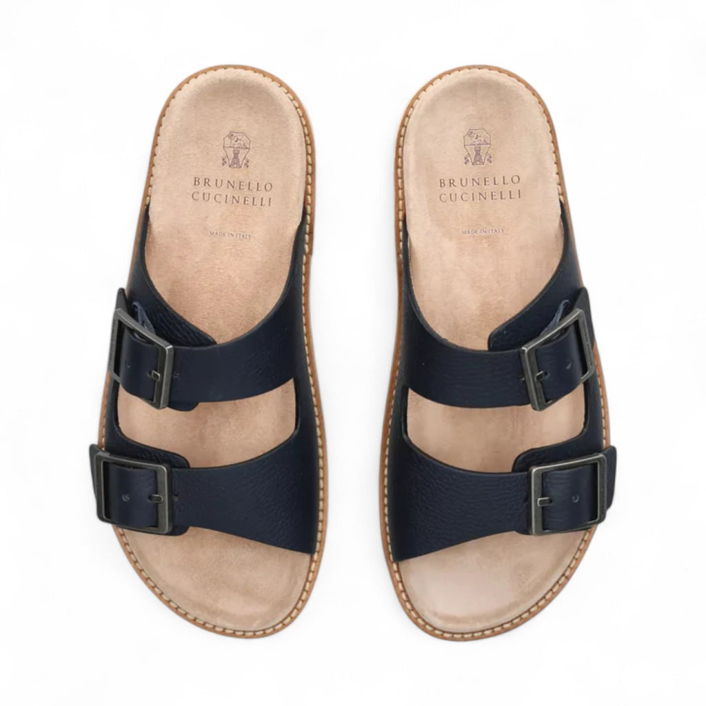 صندل رجالي من الجلد المدبوغ باللون الأزرق الداكن من BRUNELLO CUCINELLI