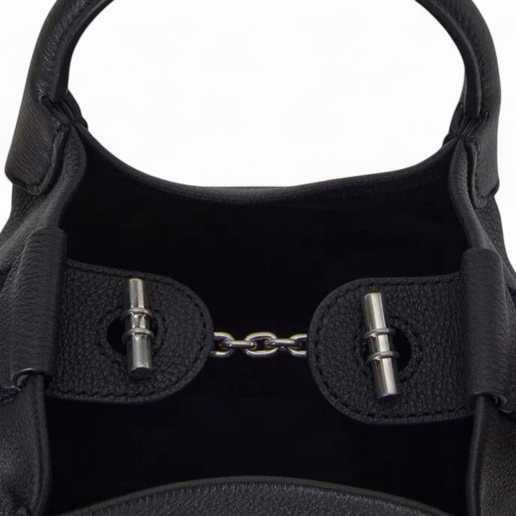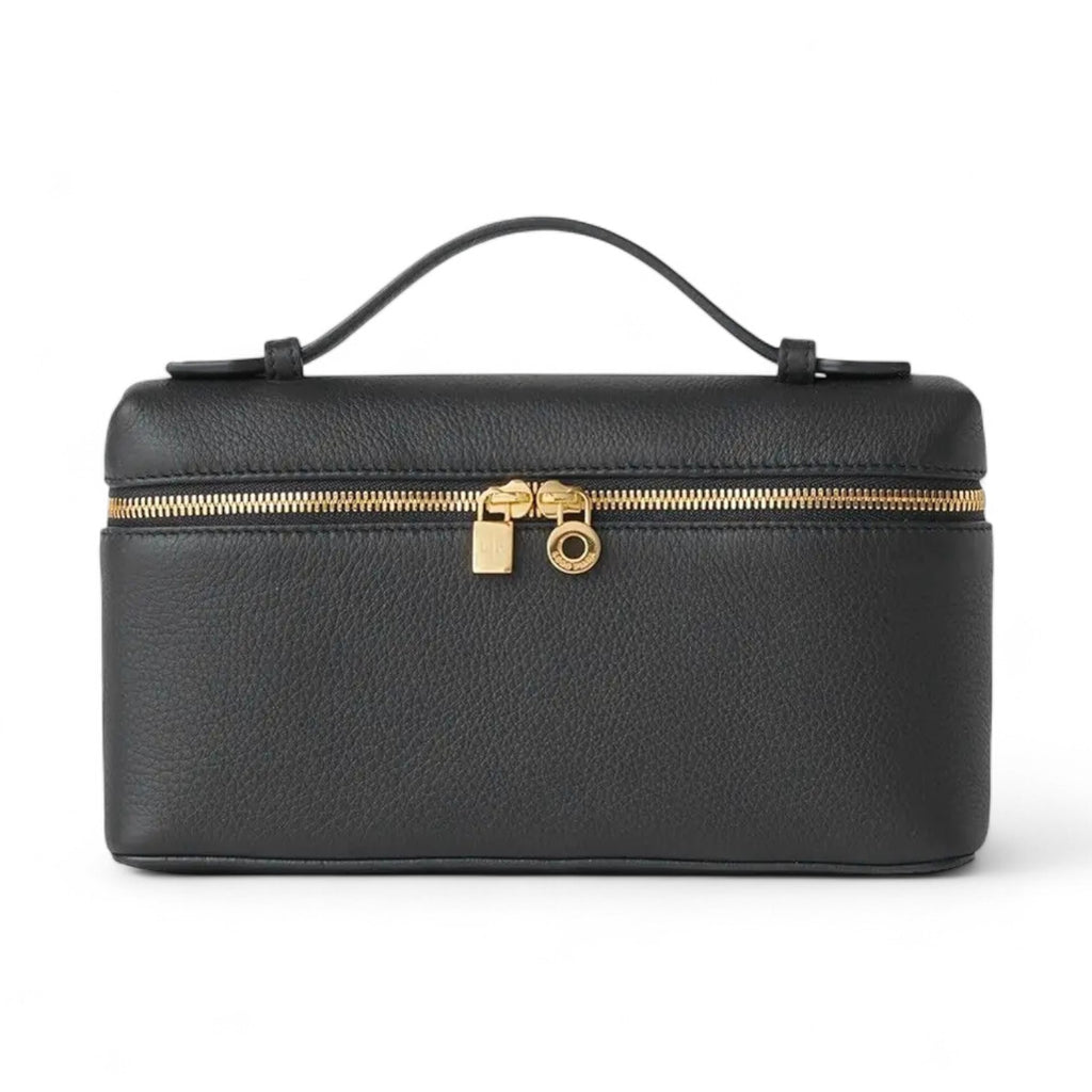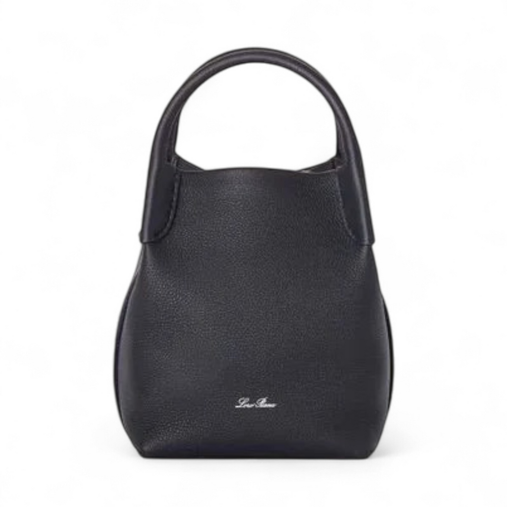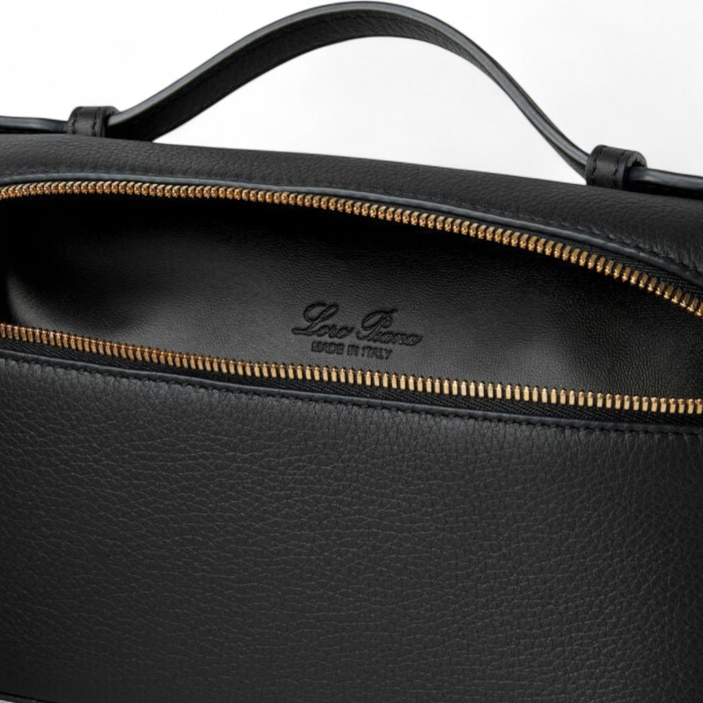 حقيبة لورو بيانا النسائية ذات الجيب الإضافي باللون الأسود والمزخرفة من جلد العجل مقاس L19