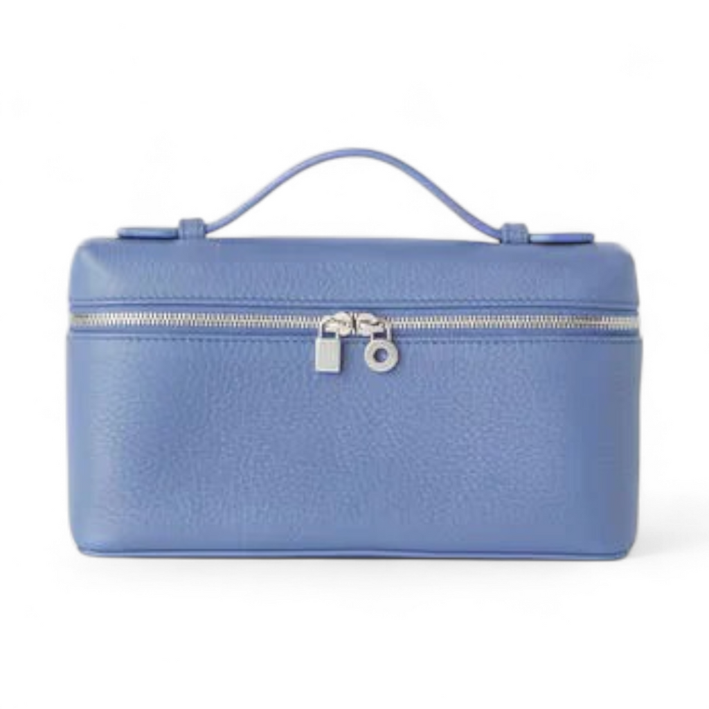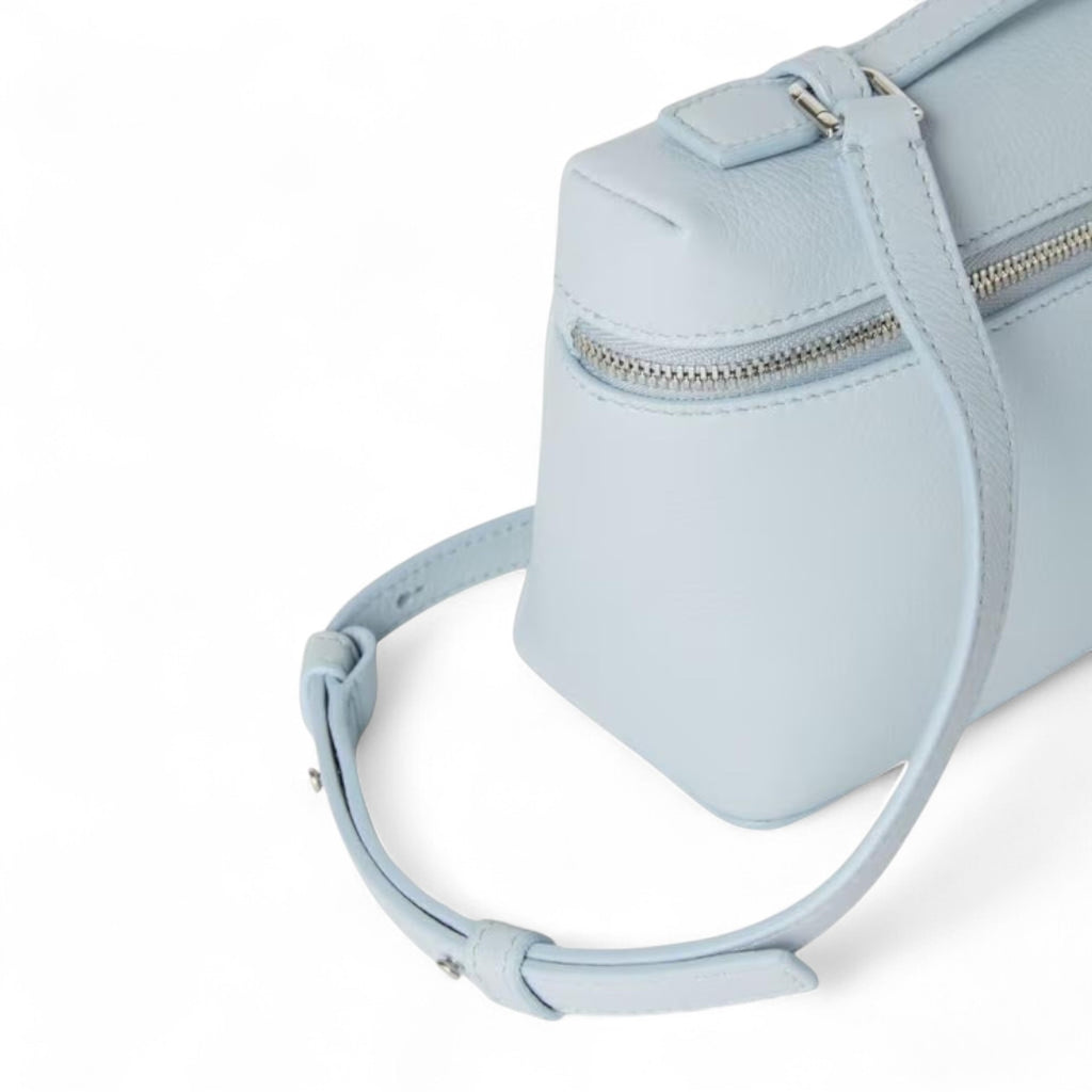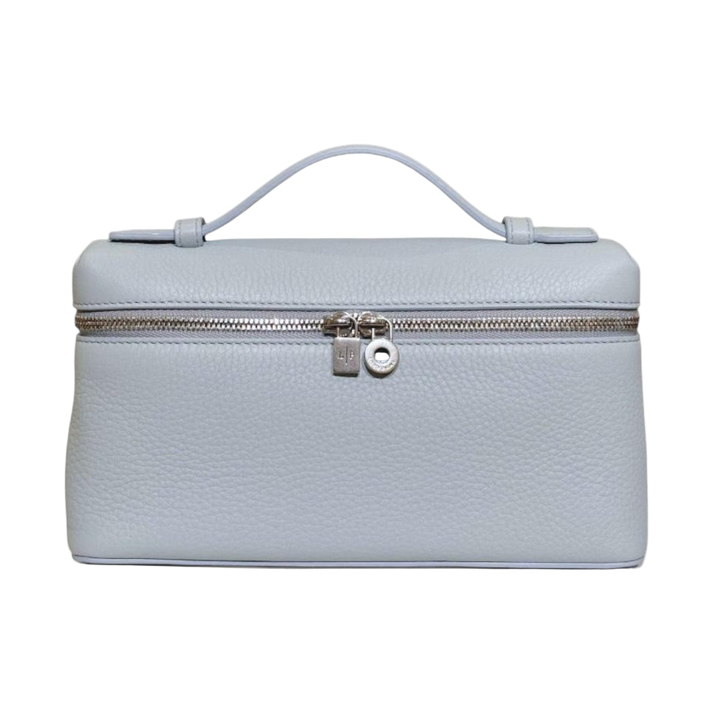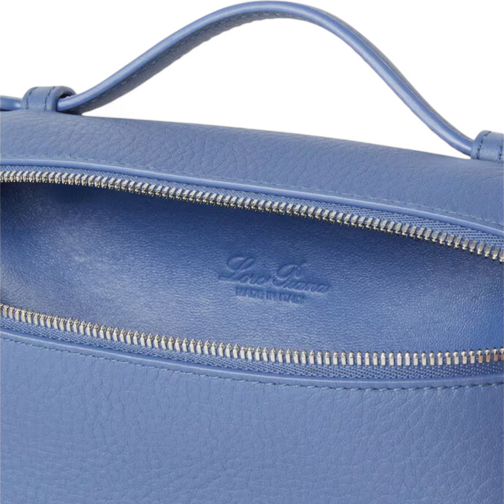 حقيبة نسائية من جلد العجل المحبب من لورو بيانا باللون الأزرق الفاتح مع جيب إضافي L19