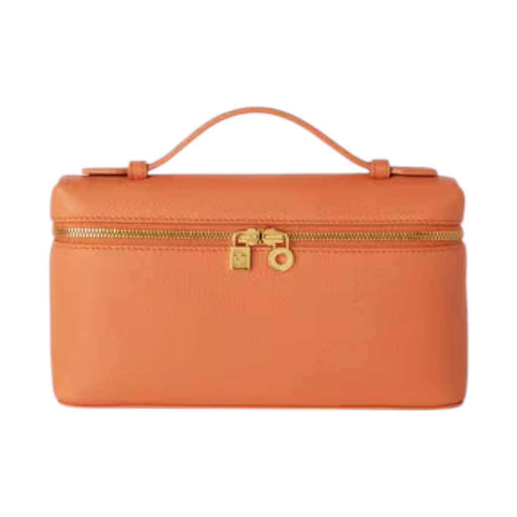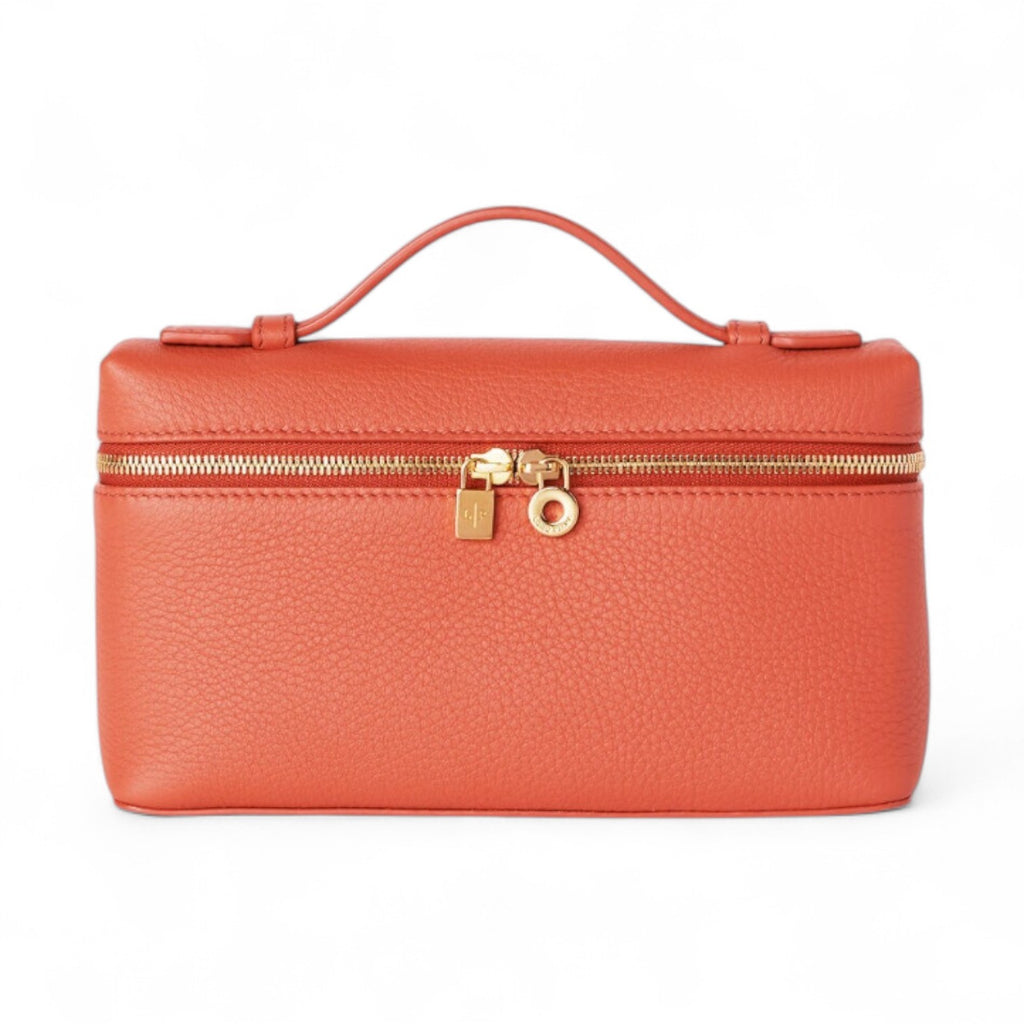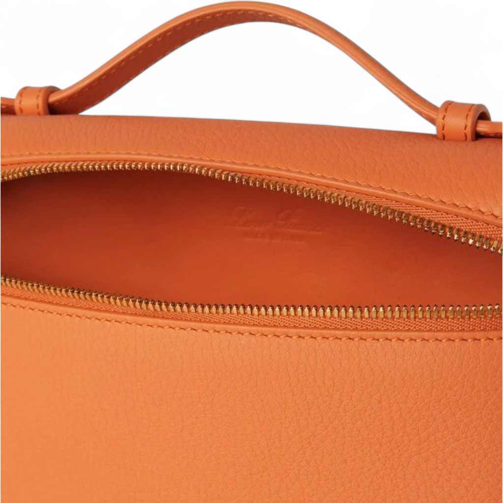 حقيبة لورو بيانا النسائية المصنوعة من جلد العجل باللون البرتقالي القرفة مع جيب إضافي L19