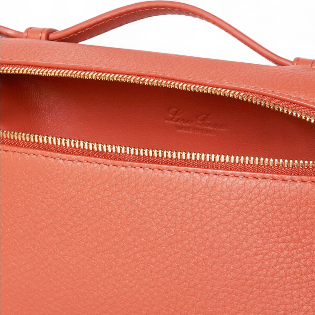 حقيبة نسائية من جلد العجل المحبب من لورو بيانا، لون مرجاني، لون ذهبي مشمس، بجيب إضافي L19