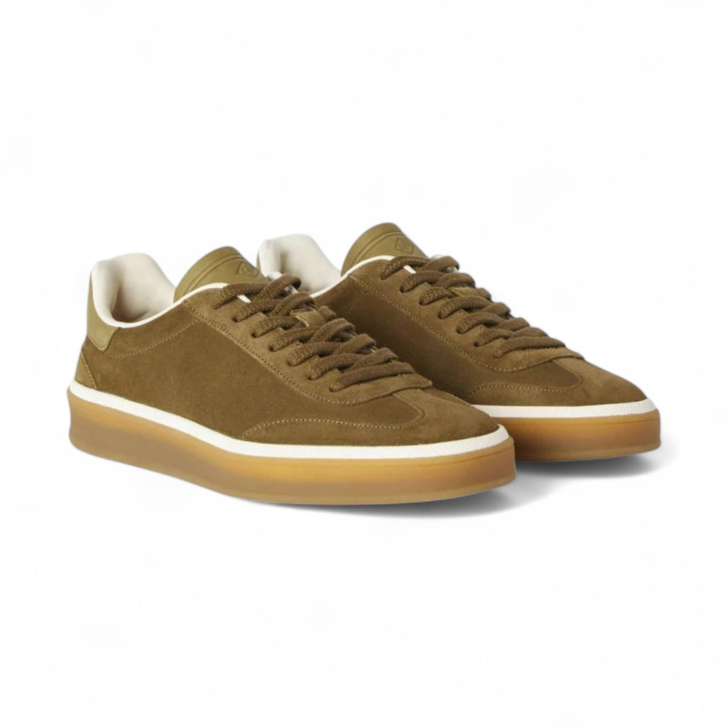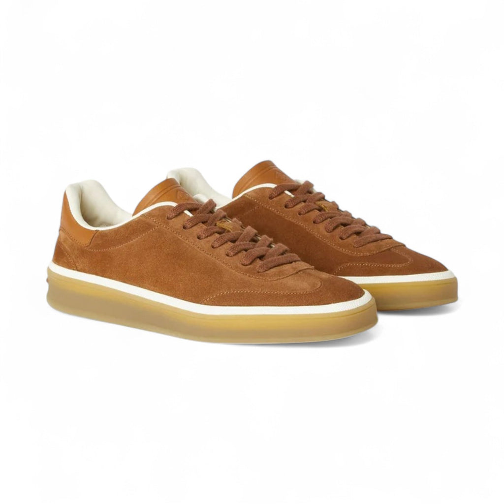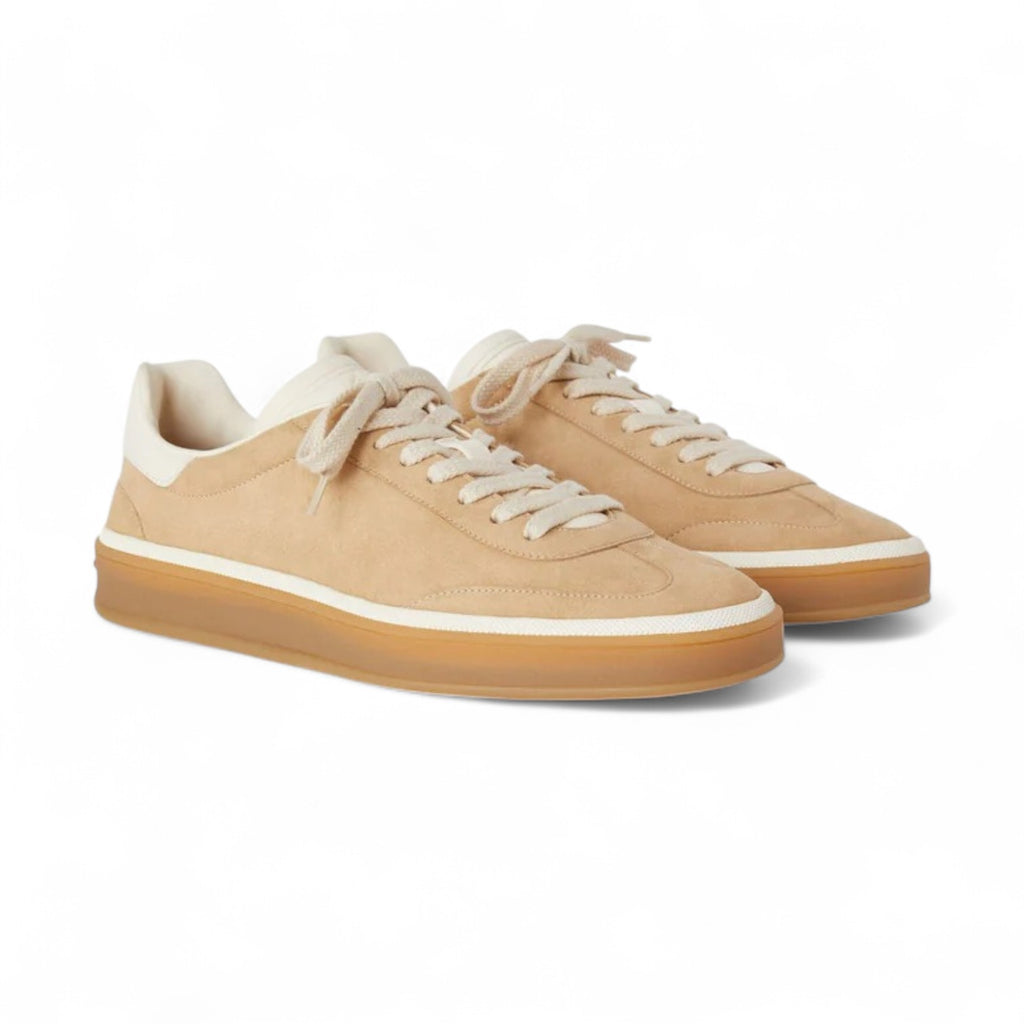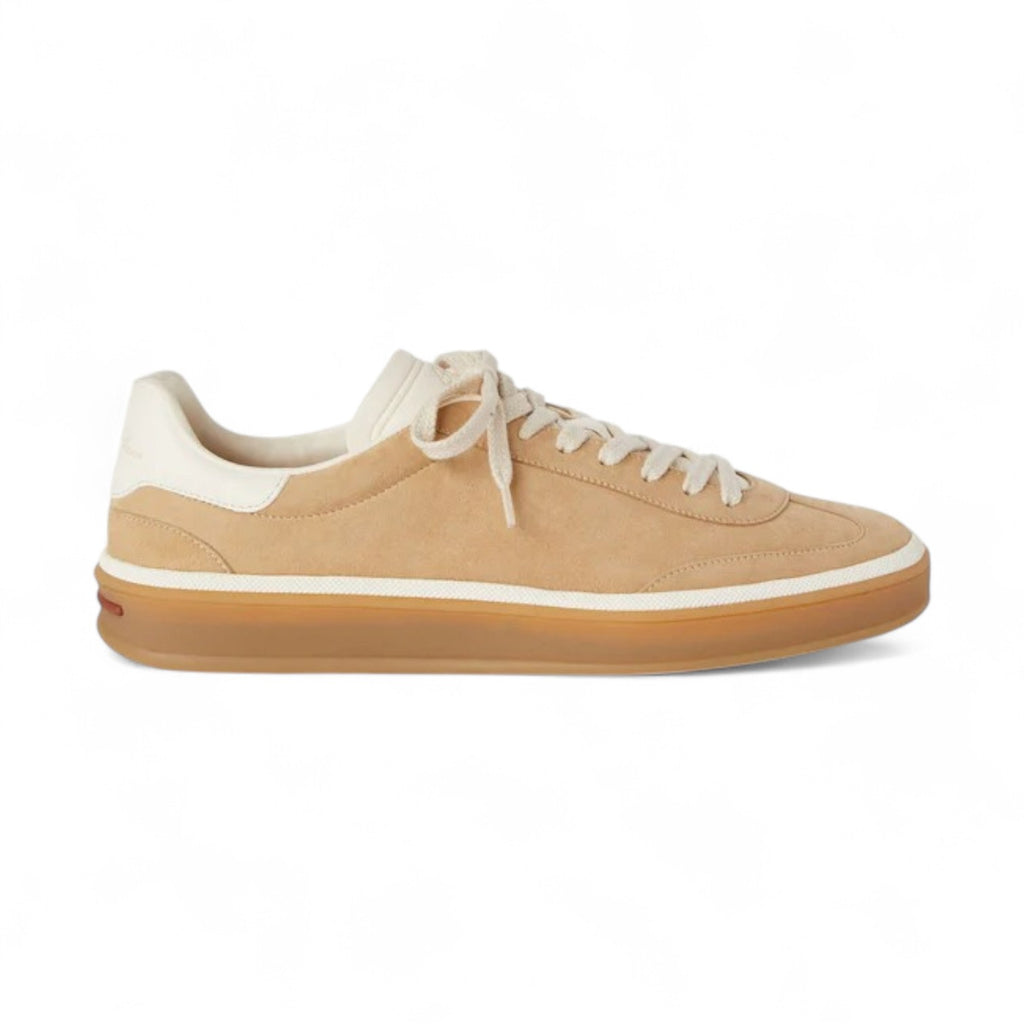 حذاء رياضي نسائي من LORO PIANA TENNIS WALK مصنوع من جلد العجل السويدي وخشب العجل المقسم