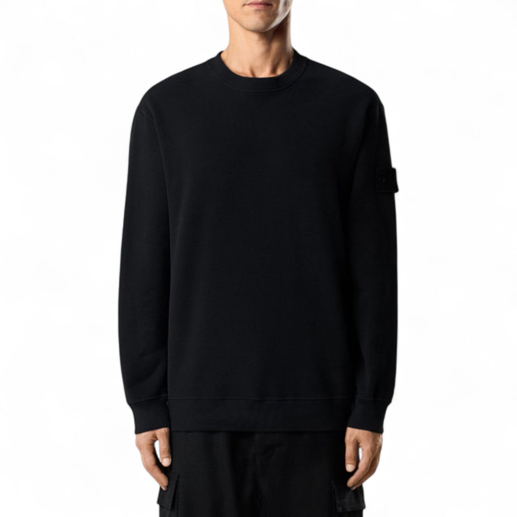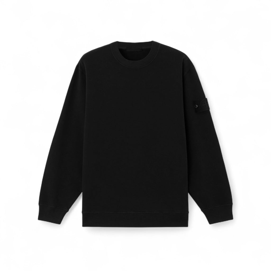 سويت شيرت رجالي أسود برقبة دائرية مضلعة من ستون آيلاند